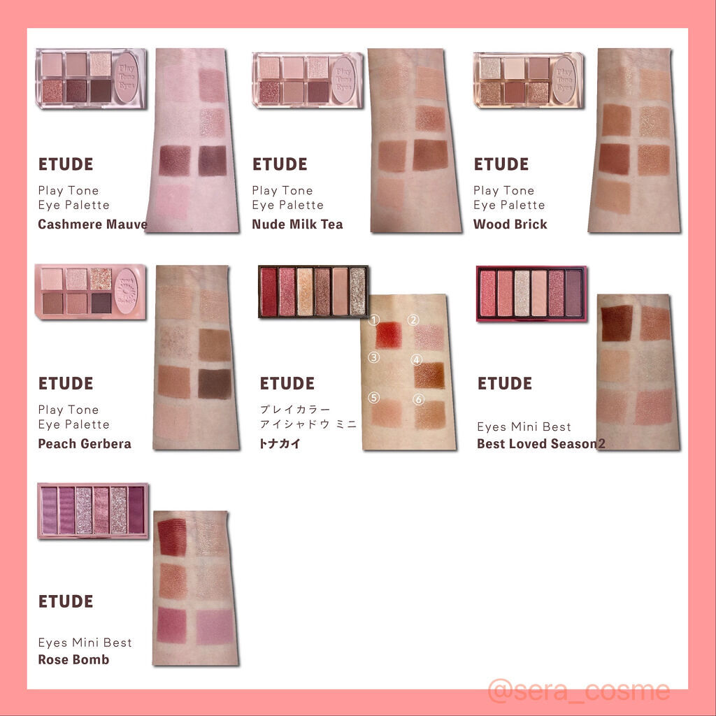 【手持ちコスメまとめ❶】~アイシャドウ~現在(2022.05)の、手持ちコスメのスウォッチをまとめてみました✨今回は、韓国コスメを中心にまとめてます🐥🌼綺麗にスウォッチして記録しておくと、後々どんな色味だったか確認できるからめちゃくちゃ便利!...