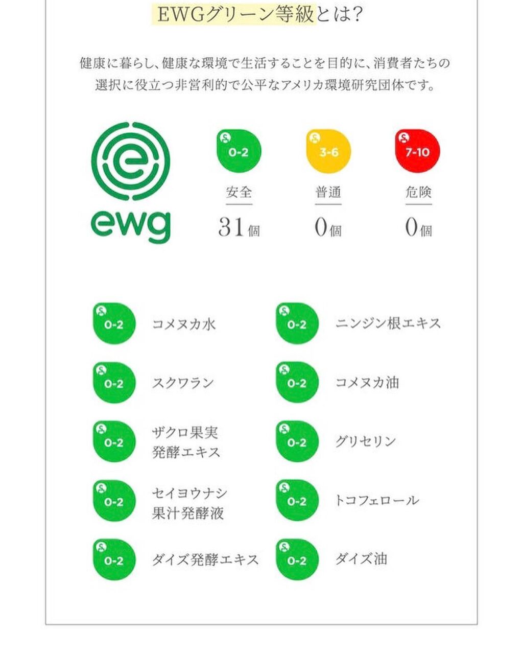 - コメヌカ水*、水、プロパンジオール、スクワラン、BG、トリエチルヘキサノイン、イソドデカン、ステアリルアルコール、ソルビトール、メチルグルセス-10,1,2-ヘキサンジオール、サッカロミセス/オオムギ種子発酵液、乳酸桿菌/ザクロ果実発酵エキス、乳酸桿菌/セイヨウナシ果汁発酵液、乳酸桿菌/ダイズ発酵エキス、エチルヘキシルグリセリン、カプリル酸グリセリル、ベタイン、ニンジン根エキス、マカデミアナッツ脂肪酸フィトステリル、フェニルトリメチコン、カルボマー、キサンタンガム、水添レシチン、ステアリン酸グリセリル(SE )、セスキオレイン酸ソルビタン、グリセリン、ダイズ油、トロメタミン、トコフェロール、カラメル *オーガニック由来原料 ※11の無添加成分:パラベン、フェノキシエタノール、ベンゾフェノン、トリエタノールアミン、硫酸系界面活性剤、タルク、クロルフェネシン、ミネラルオイル、ベンジルアルコール、合成香料、合成色素