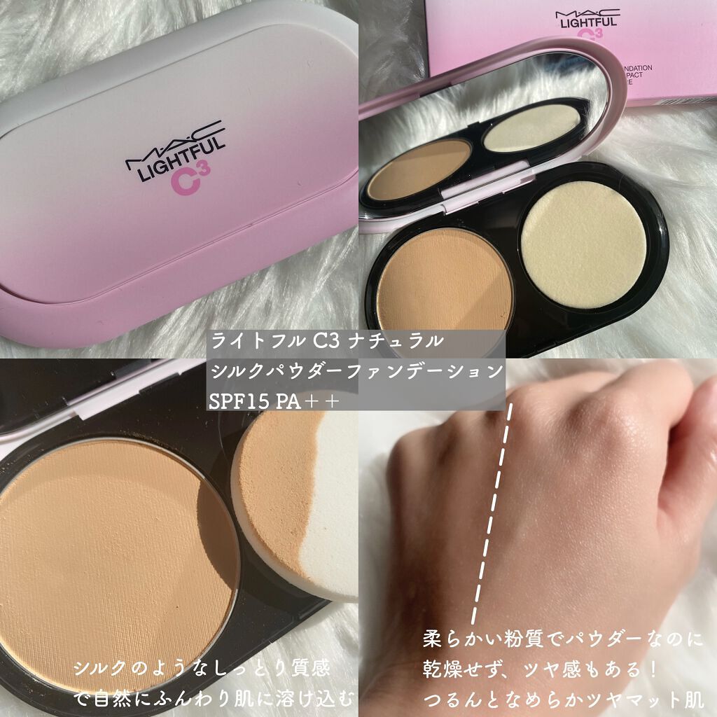 薄づきなのにしっかりカバー👾 【 #MAC / #ライトフルC3ナチュラルシルクパウダーファンデーション 】 サラサラで粒子の細かい #パウダーファンデーション 薄づきで重ねても厚みが出にくい仕上がりなのにしっかりカバーしてくれる所がお気に入り❣️ メイク直しや、メイクの仕上げに気になるシミや赤みに重ねて使うのがオススメ!!