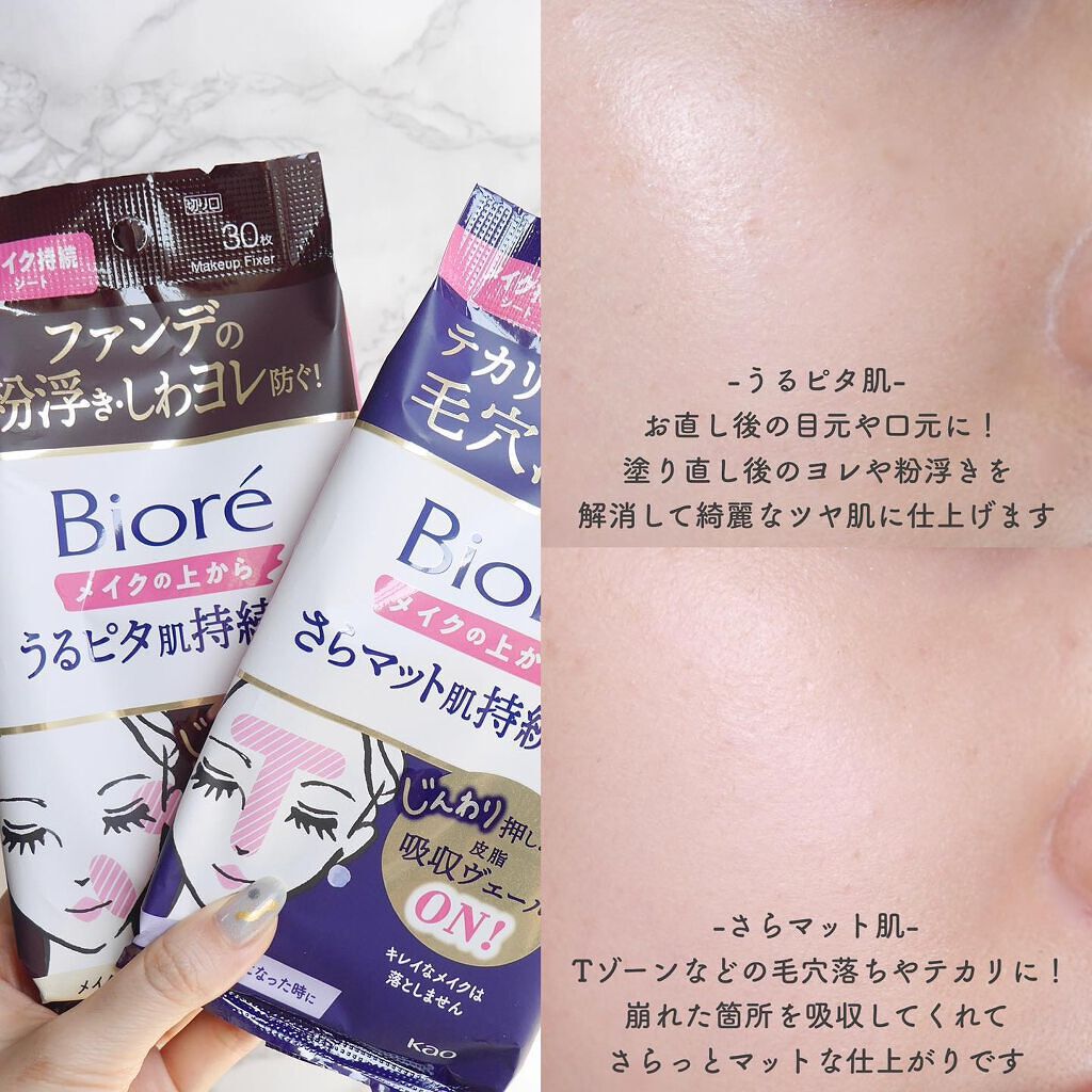 花王株式会社様にご提供して頂きました🤍夏のメイク崩れに悩んでる方必見‼️ビオレ🩵✨⭐️メイク持続シートさらマット肌続くメイクの仕上げに!出来立てメイクを密着ロック*1🤍Tゾーンのメイクの上からシートをぎゅ~っと押しあてると「メイク持続ベール*...