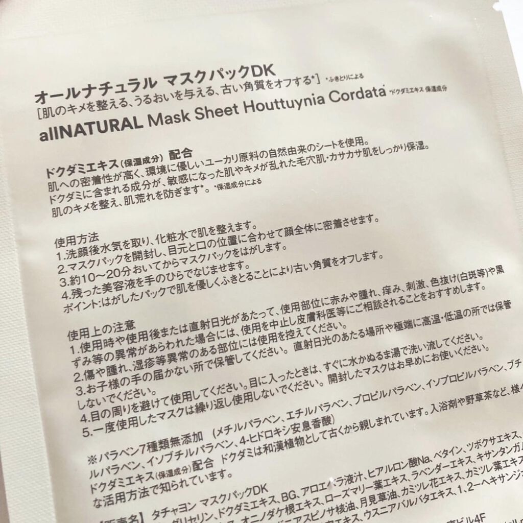 ...♡.allNATURALオールナチュラルマスクパックDK#コスメ購入品#正直レビュー肌のキメを整える、うるおいを与える、古い角質をオフする(ふきとりによる)シートマスク。肌への密着性が高く、環境に優しいユーカリ原料の自然由来シートを使用...