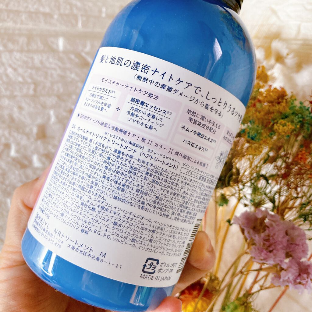 - ダメージリスクは日中だけでなく、夜にも。髪と地肌の濃密ナイトケアで、しっとりうるツヤ髪へ。 ナイトキャップ処方で睡眠中の摩擦・乾燥ダメージから髪を守り、地肌に潤いを与える美容液成分配合。 シャンプー:シリコン、パラベン、鉱物油、合成着色料フリー トリートメント:パラベン、鉱物油、合成着色料フリー ◎ネロリ&ピオニーの香り