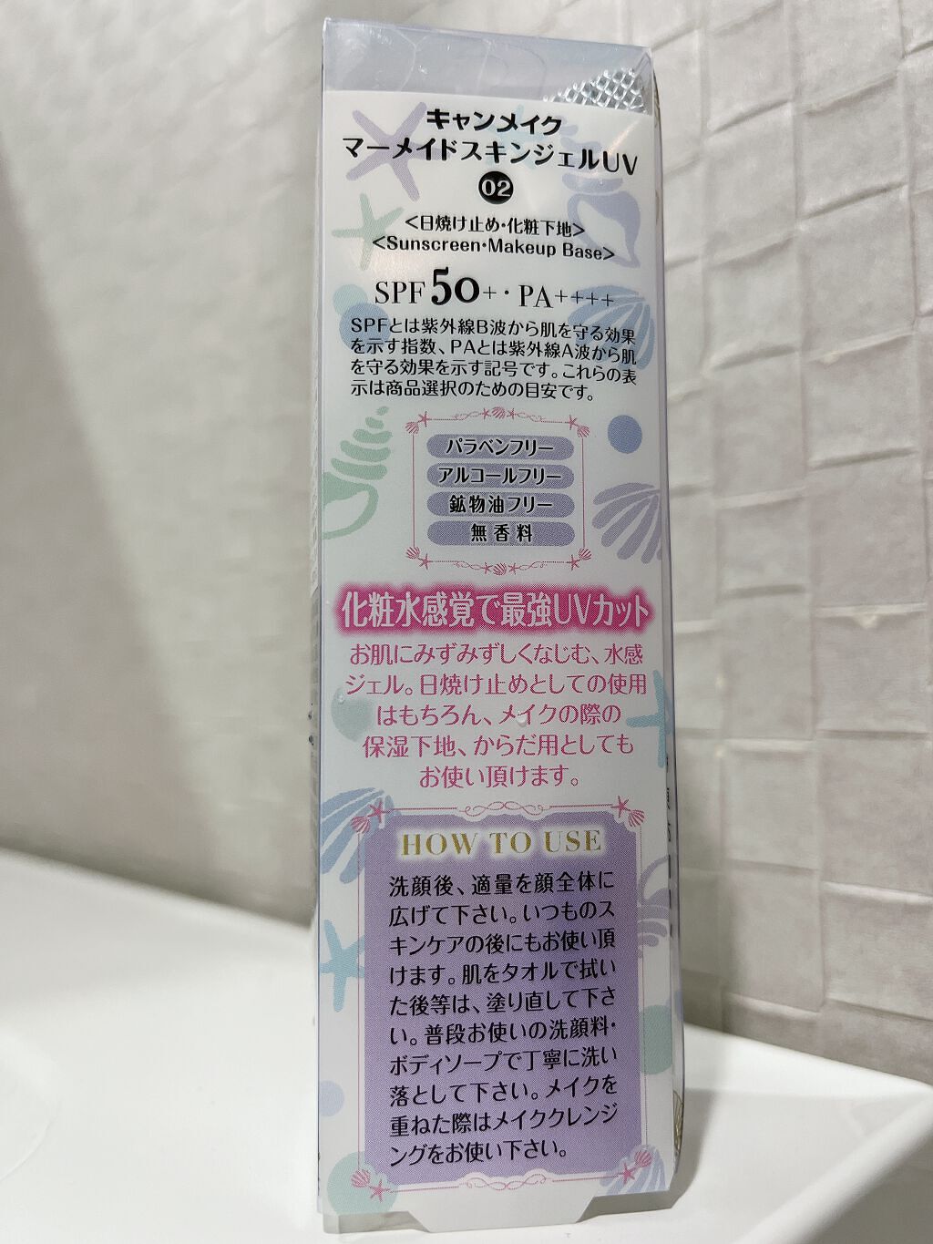 - パシャッと爽快!人魚姫気分♥化粧水感覚で使えるUVジェル 国内最強レベルのUVカット効果で紫外線から肌を守ります。 肌にのばすとパシャッとはじける水感ジェルでみずみずしく軽い仕上がり。 顔だけでなく全身にも使えます。 洗顔後、これ1本でスキンケア・保湿下地・UVカット下地としてご使用いただけます。 ※2~3時間ごとにこまめに塗り直しをしてください。 また、肌をタオル等で拭いた際も塗り直しを推奨いたします。