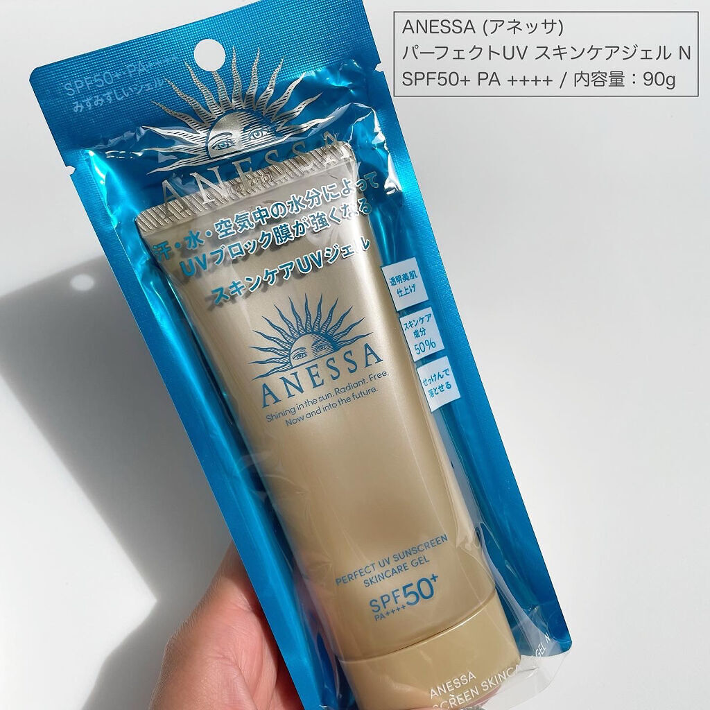 絶対焼きたくない!て、日は必ずこれに手が伸びてしまう日焼け止め🧴ANESSA(アネッサ)パーフェクトUVスキンケアジェルNA〈日焼け止め用ジェル〉顔・からだ用90g¥2,508✅SPF50+PA++++✅石けんで落ちる✅長時間保湿✅下地にも✅...