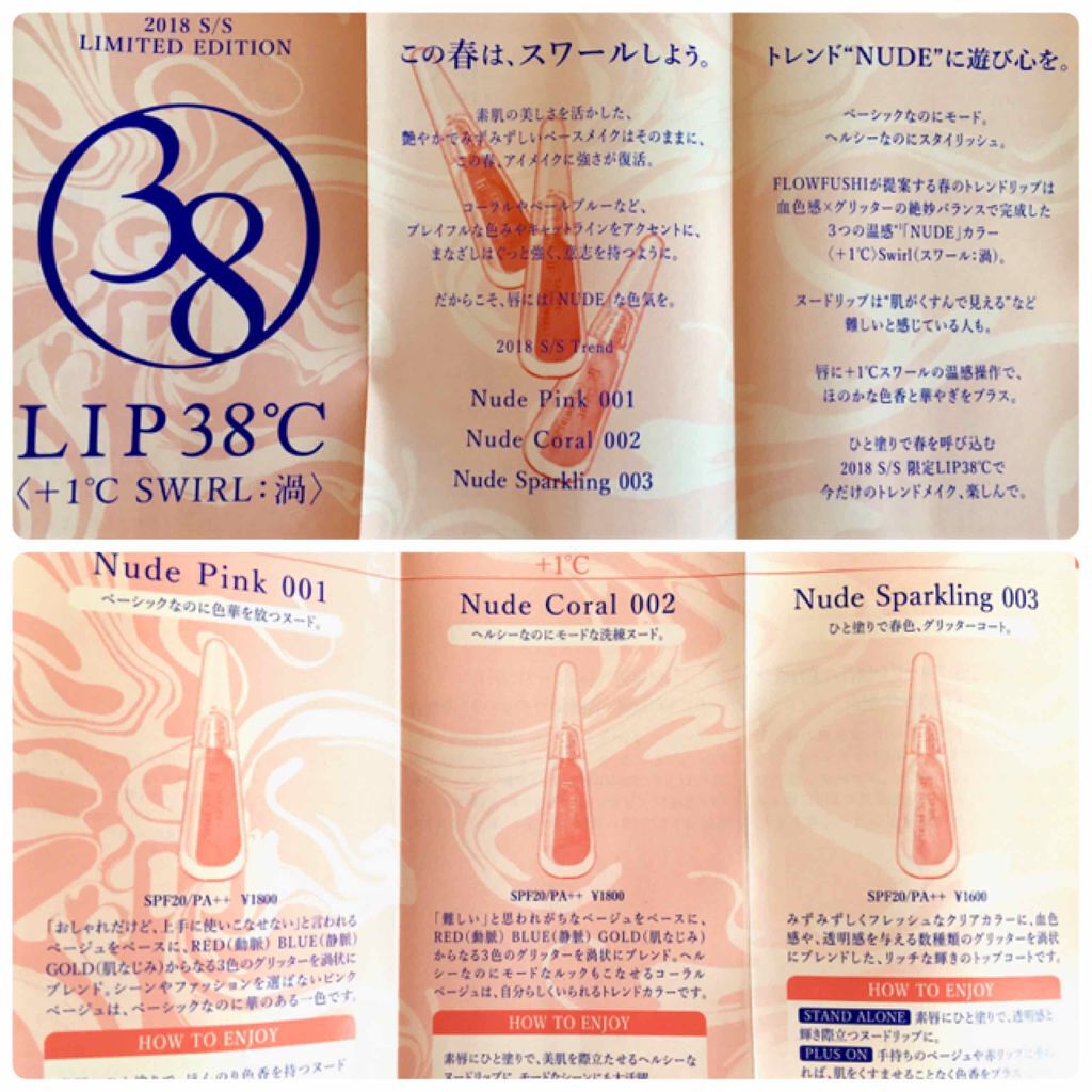 ❤︎フローフシLip38℃〈+1℃SWIRL:渦〉ベーシックなのにモード。ヘルシーなのにスタイリッシュ。4/16、本日発売の新作のフローフシリップは、春のトレンドで血色感×グリッターの絶妙バランスで完成した3つの温感「NUDE」カラー🌟✔︎N...