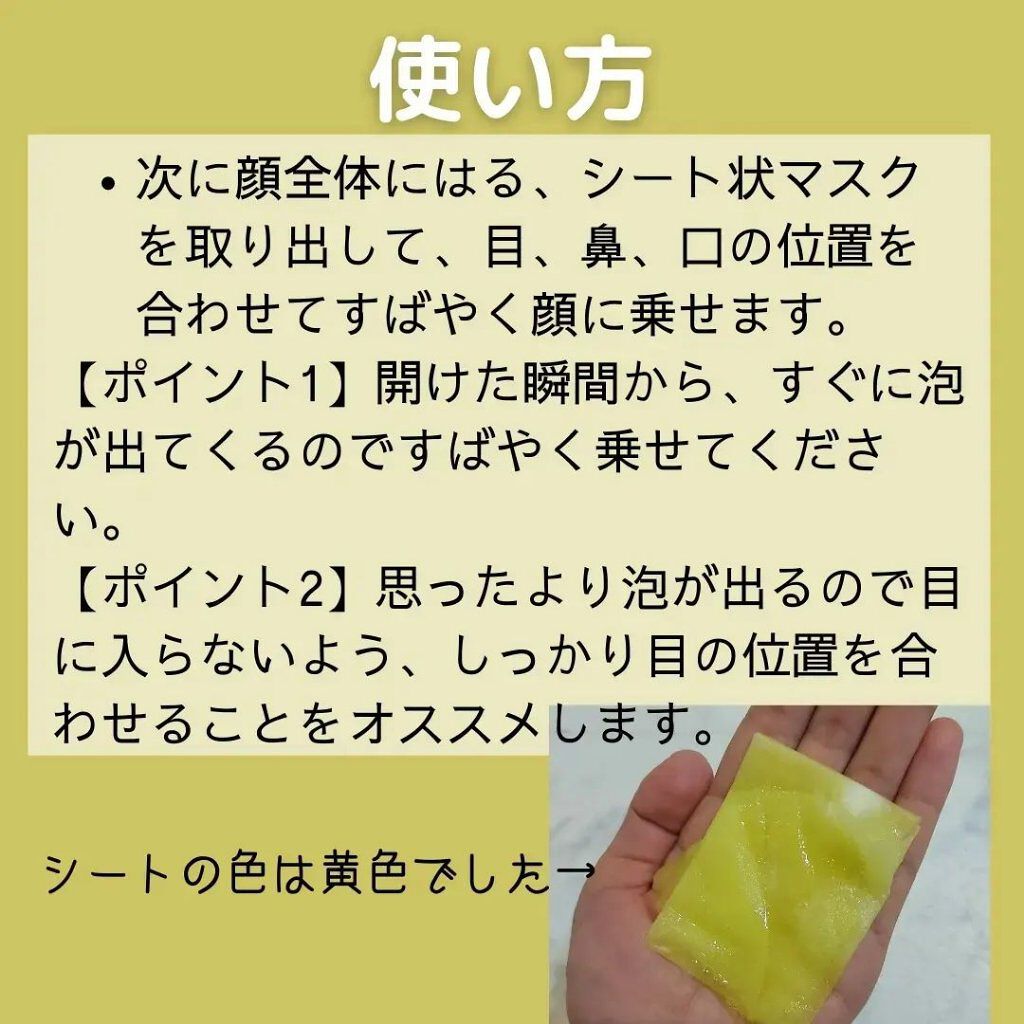 | スキンケアランキング第49位 | シートがみかん色でびっくり! とろっとろの液が含まれていて 貼り付けたらぴたーっとくっついてすごく気持ちいい! | 詳細を見る | |