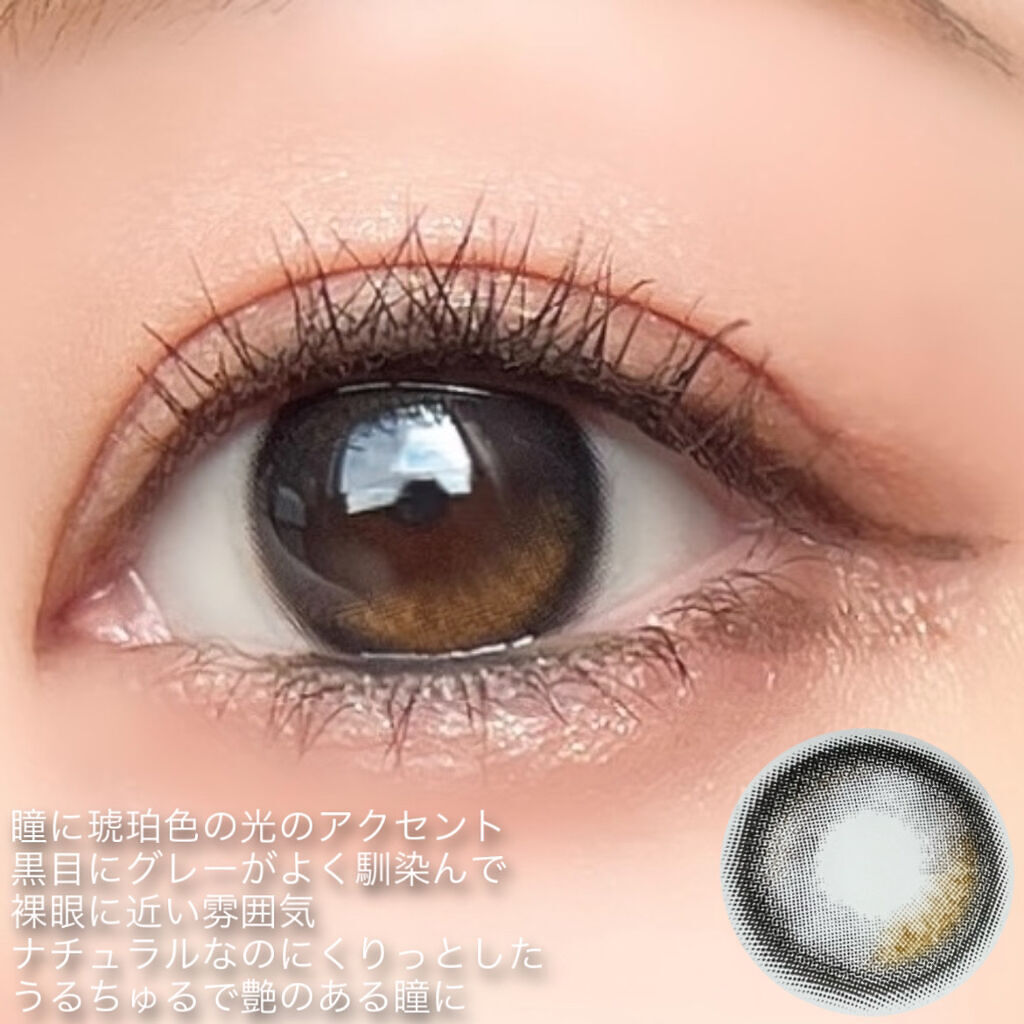 個性的なカラーからナチュラルなものまで幅広いラインナップで見てて楽しかったです! 透明感のあるブルーグレーが瞳に溶け込み、リアルなグレーアイに見せるレンズ。 透け感のある色味だけどしっかり発色するナチュラルハーフ系カラコン。着色直径も小さめなので着せ替え感があってかわいい。 N's COLLECTIONはレンズのつけ心地もすごく良くて他のカラーもとっても可愛いです!