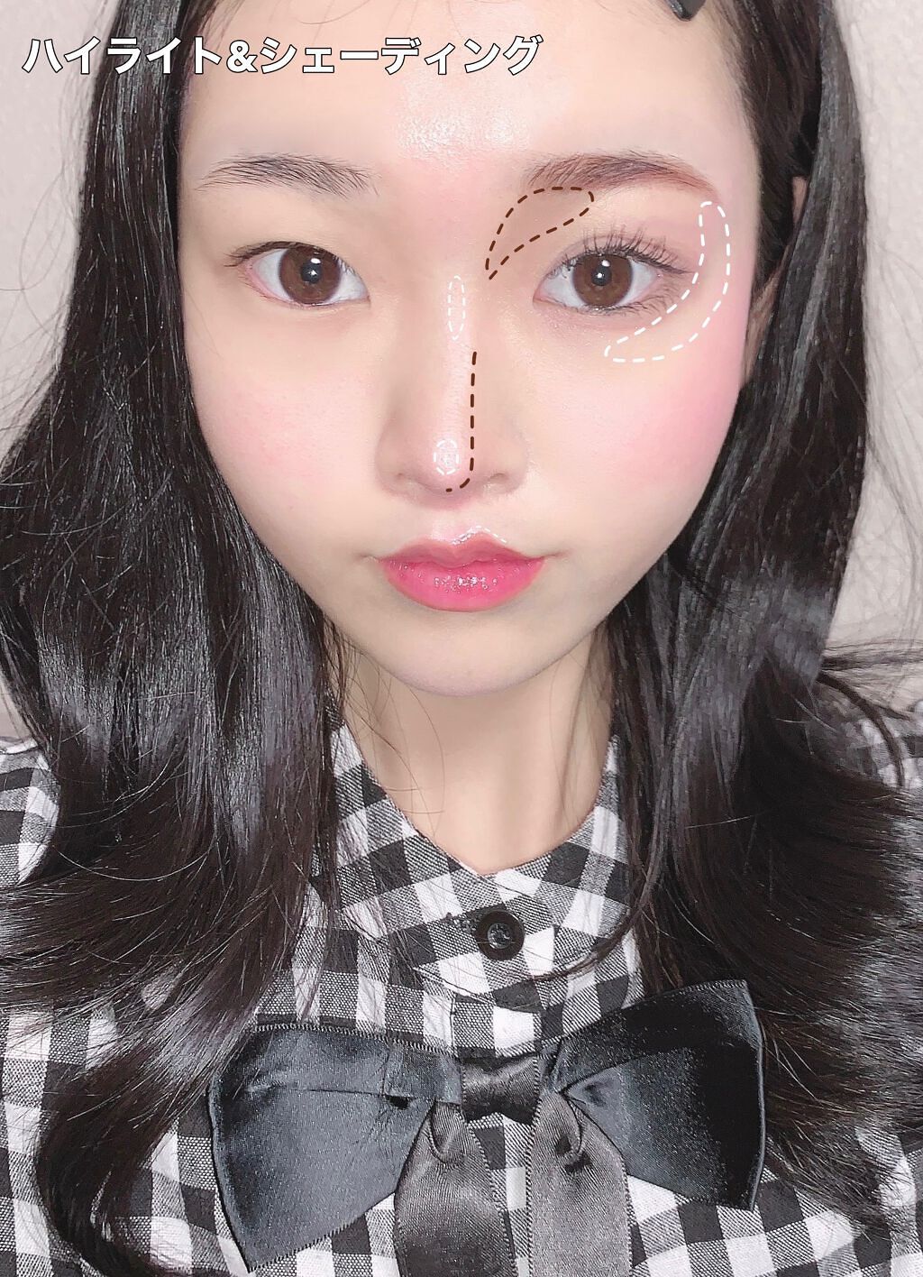 鼻はお顔の中心にあるので鼻が整っているだけで美人見え、垢抜けの第一歩に🥺🎀 シェーディングは内側に凹ませるように塗ると鼻先の丸みを解消できます🌷 ハイライトは逆三角形に塗ることで鼻先がシュッとして見えます🎀