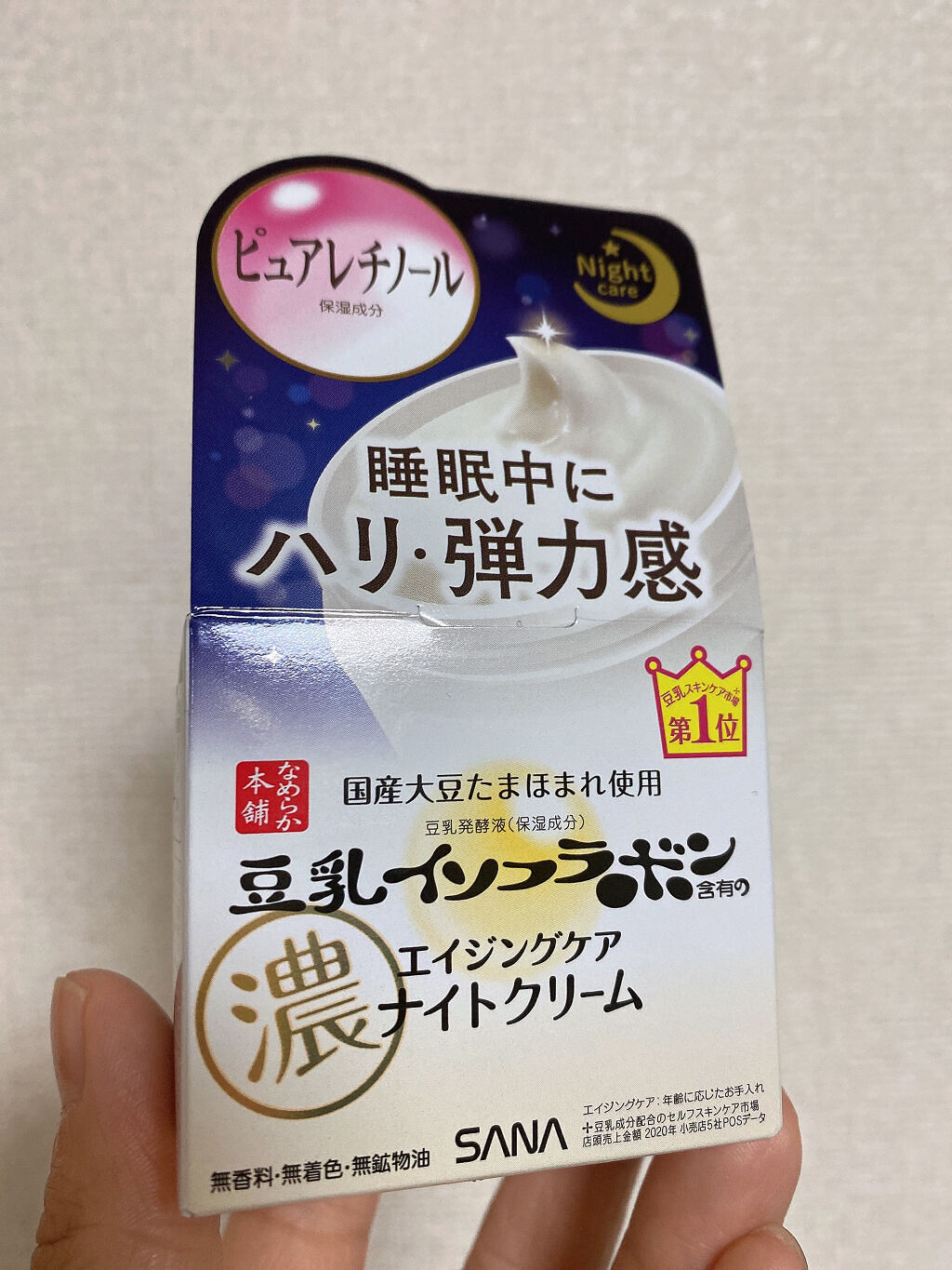 - リンクルラインからナイトクリームが新登場! ピュアレチノール*1を新配合の濃厚クリームが一晩かけて密着して浸透*2する、おやすみパック処方です。 商品特徴 〔 ①ピュアレチノール*1×豆乳発酵液*1配合で本格スキンケア 〕 『なめらか本舗』オリジナルのイソフラボン含有の豆乳発酵液*1に加え、ピュアレチノール*1を新配合! お肌にハリ・弾力感を与えます。 〔 ②夜のしっかりケアで乾燥による小じわを目立たなくします*3! 〕 肌ストレスの少ない夜のお手入れをおすすめします。 新登場のナイトクリームはおやすみパック処方を採用し、濃厚なクリームが一晩中肌に密着しつつ、乾燥による小じわ目立たなくします。 〔 ③3ステップの重ね技ケア! 〕 化粧水、乳液も新テクスチャーで保湿感がパワーアップ! リンクルライン3品一緒に使用するのがおすすめです。 *1 保湿成分 *2 角層まで *3 効能評価試験済み