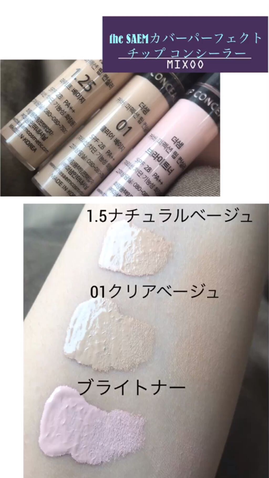この2色パッケージで見るとよく似ているんですが肌に塗ってみたら明らかに違った!笑 そしてどちらも私の肌色になじむかも! ・01クリアベージュは基本的に顔のベース部分に合う色味。毛穴が、消え…て、る……😳??! チップなので塗りやすいですし、量の調整がしやすいかなと。