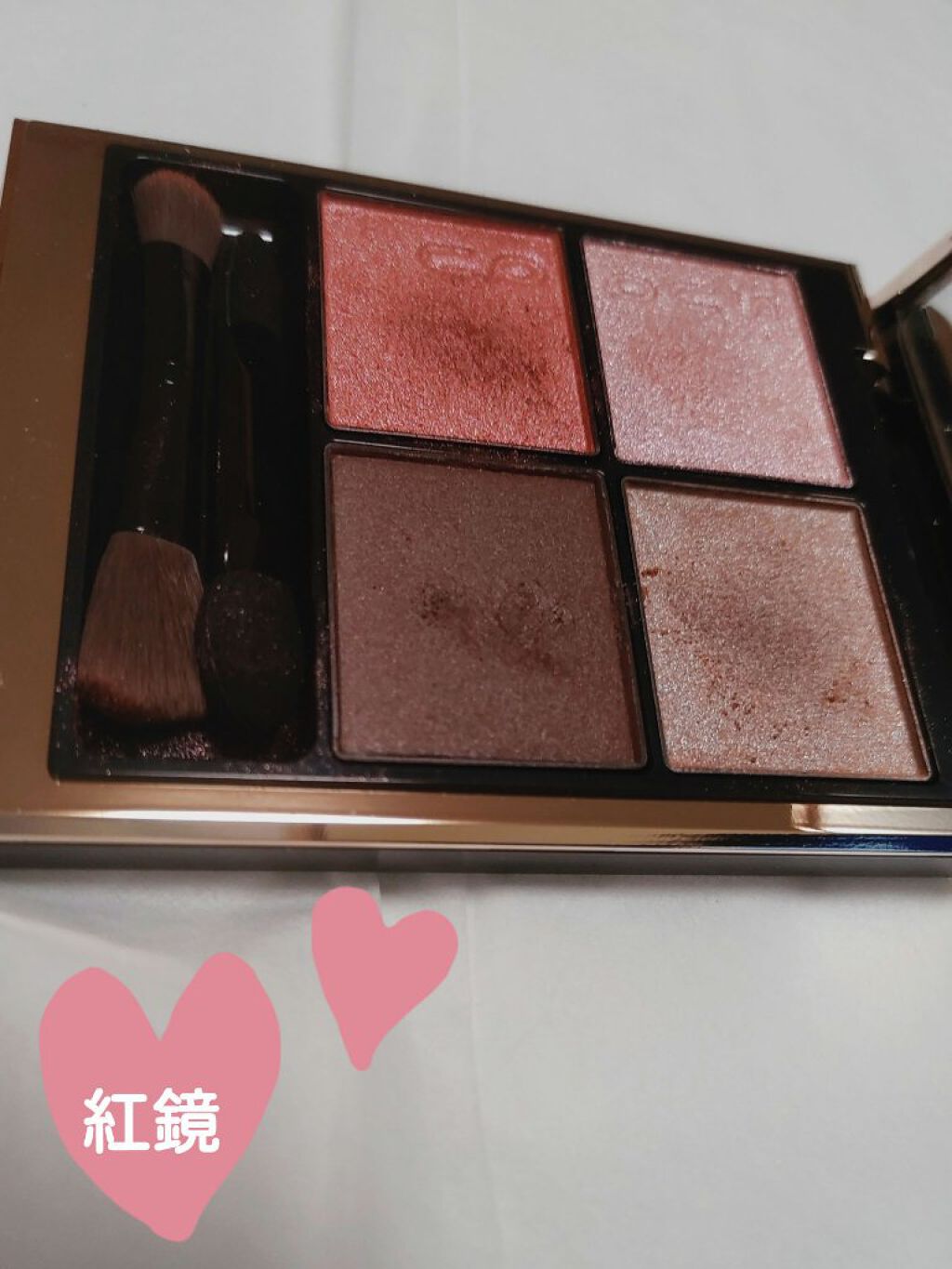 使用してたらいいことがありました!(^-^) 縁起がよいかも、、 パレット4色あるうちの左上のキラキラカラーは使ってません(前使用したときにちょっとかゆうま、、かも?でして🥺) かゆかゆ疑惑がなければ文句なしの星☆5 逆に言えばそれでも使用したいかわいさ♡ 貝殻淡コーラルピンクです🥰 効果的に目元がピンクに! 優しいけどエッジが効いてます✨✨ エレガンスからはいつも感動をいただきます♡