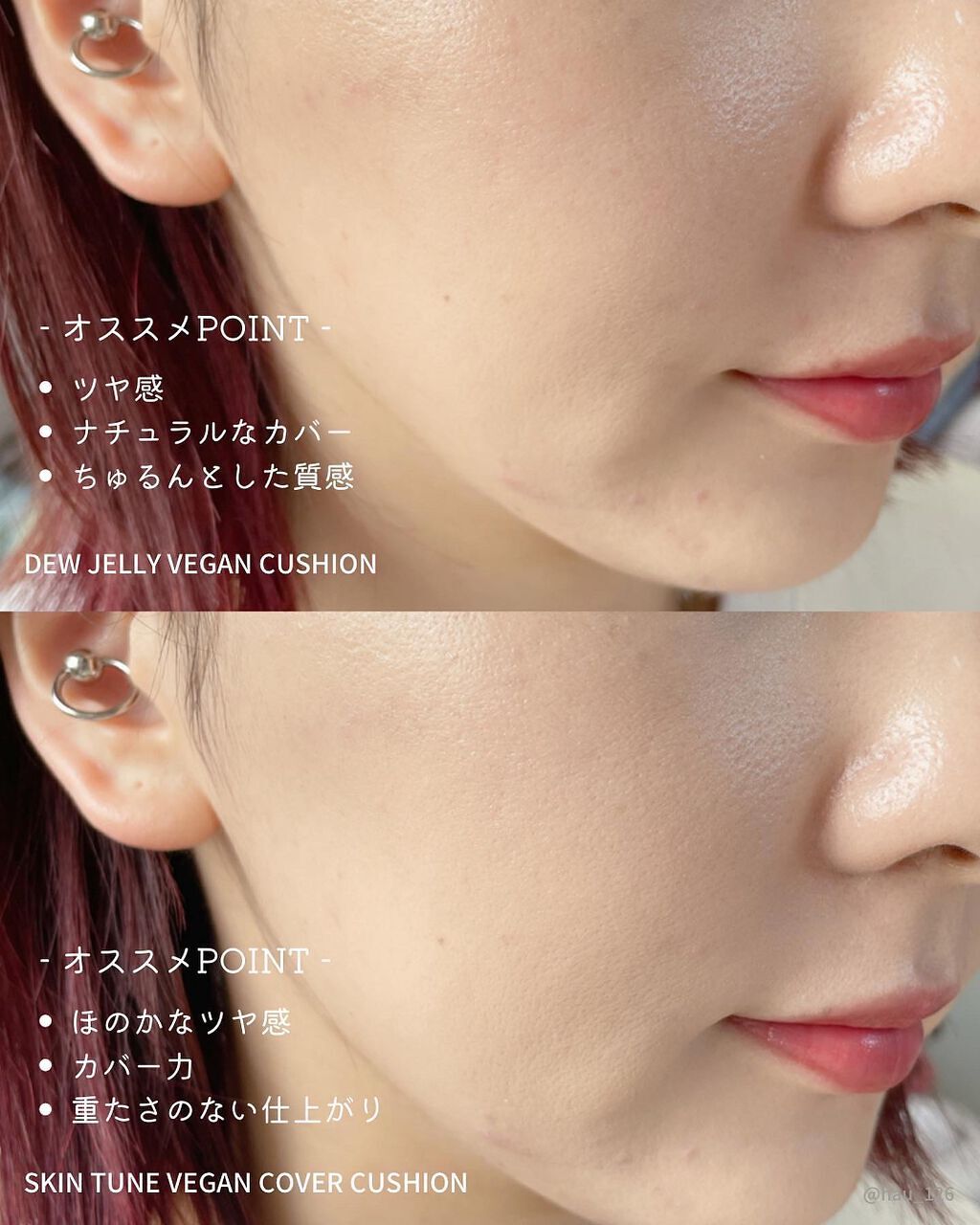 1位💛デュージェリー とにかく私の好きなみずみずしくて、ちゅるんとしたツヤ感としっとり感がお気に入りでした:) カバー力は皆無だけど、ふっくら感とツヤ感があるから気になる毛穴とかの凸凹を光で飛ばしてくれます🤍 2位💗スキンチューン ツヤ感,カバー力がしっかりあって、AMUSEの1番最初に出たクッションシリーズとは思えないほどの完成度だと思います💡 3位💙メタフィットクッション 1番最新のクッションです🆕ˎˊ- 使い心地は良いんだけど、マット仕上がりだから私の好みの仕上がりではないから3位.ᐟ
