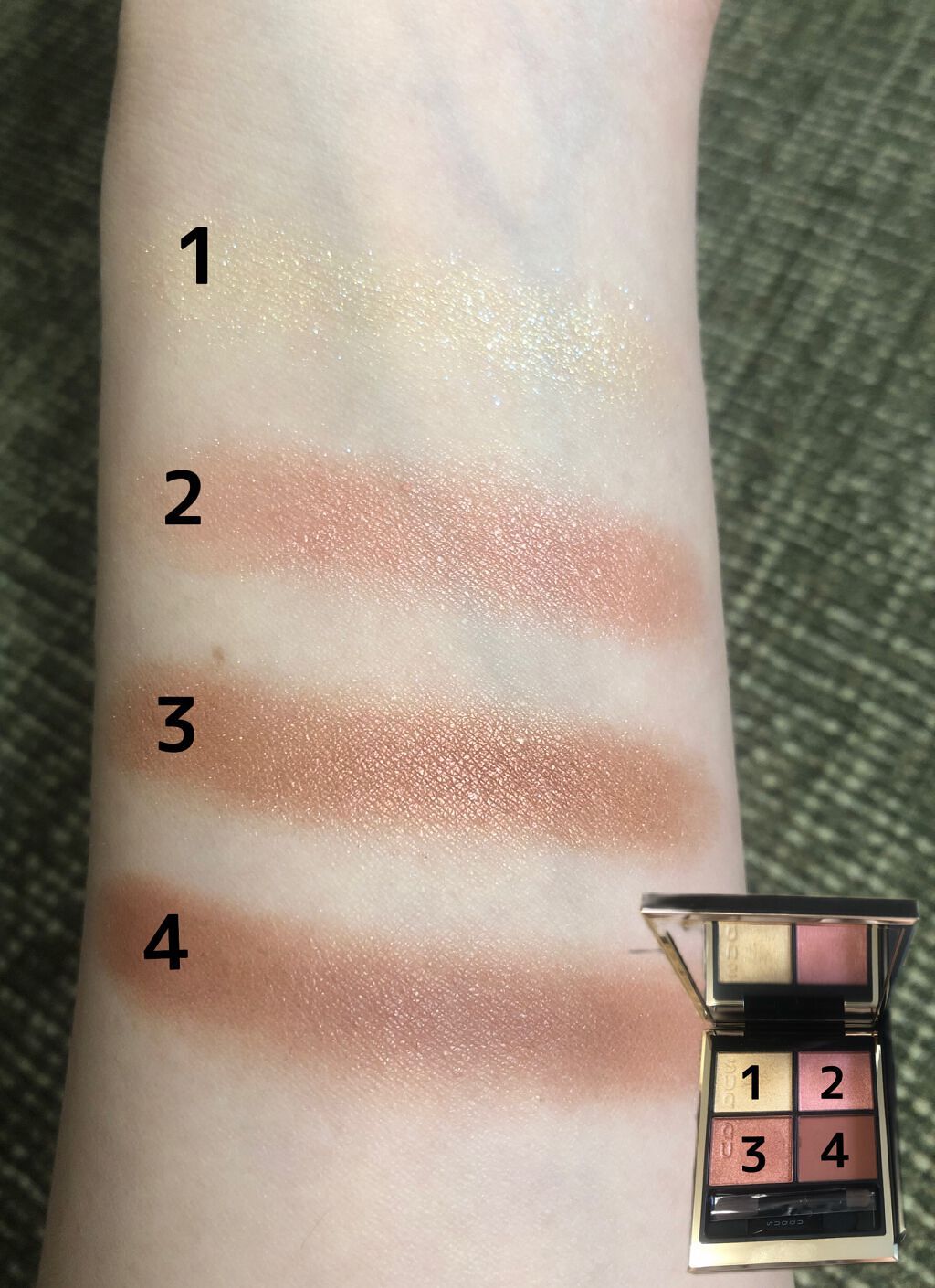 なのにアイシャドウのもちも良くなってるんだとか👏✨✨ 終売のカラーもあるのが残念ですが、淡い色やベースに使いやすいカラーが出て個人的には嬉しい😊 さてこのピンクゴールド、名前の通り優しいピンクベースにゴールドのパールがちらちら光ってかわいいんです!!ラメとも言えるくらい輝度が高い!❤️ 単色でも重ねて塗ればちゃんと発色して全然いけるし、ベースとして使うと奥行き出るしですごく良いです❤️ 他の色も気になる…夏らしい色が多い気がした🍉🐠