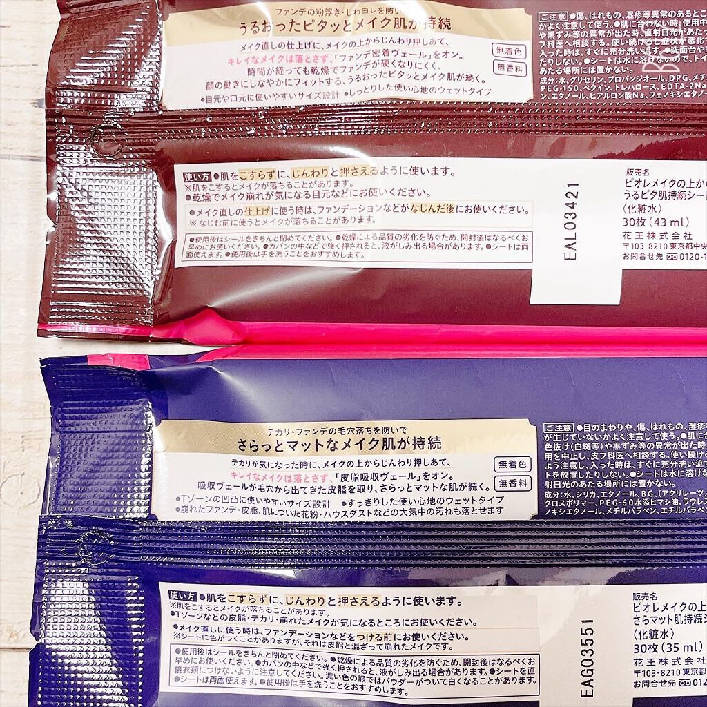 ビオレ ビオレメイクの上からうるピタ肌持続シート | 547円 |