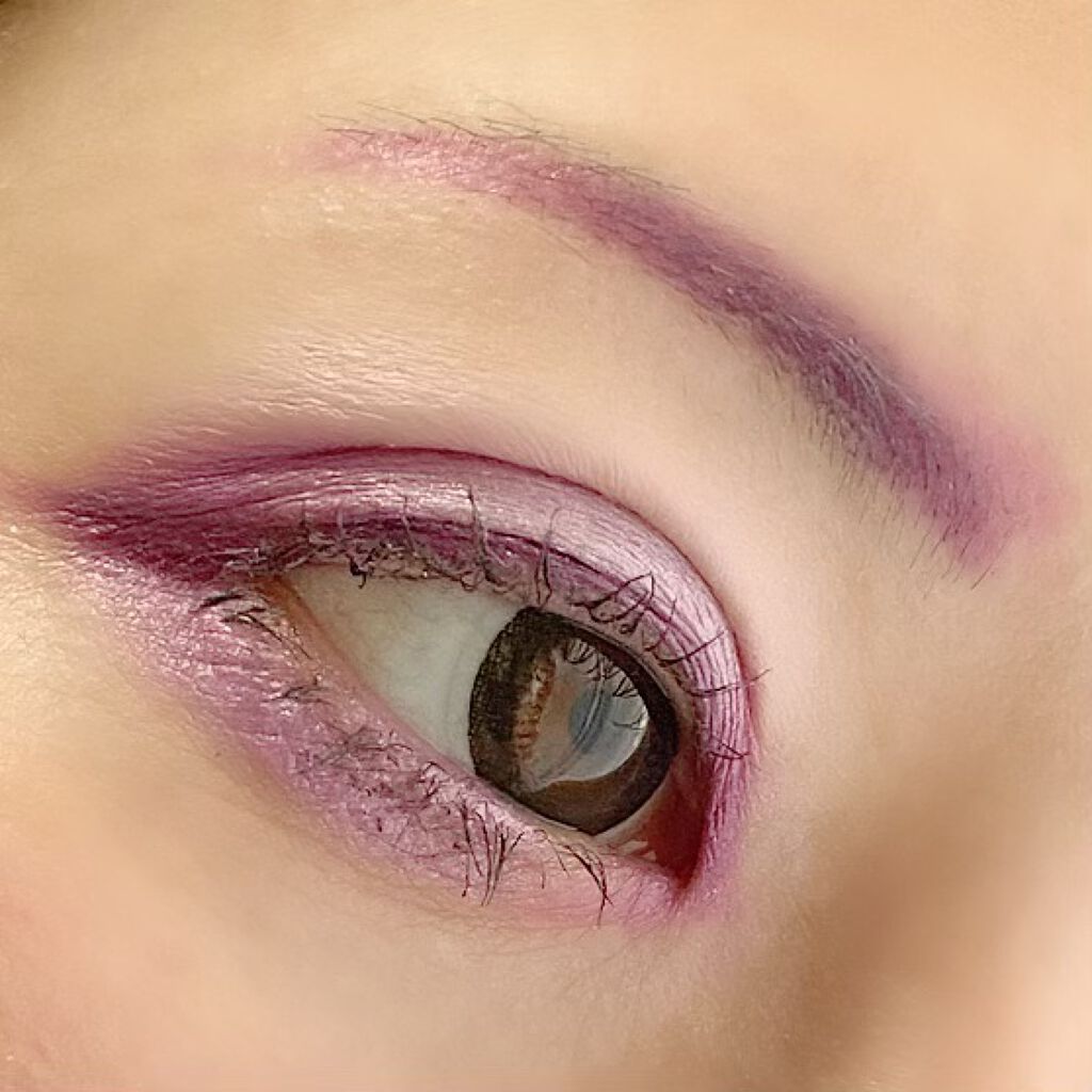 眼瞼下垂手術の後、はじめて使ったアイシャドウ。保険適用でしたので奥二重に仕上がりました。それもあって、目尻にアイライン状に赤を入れることで、切開跡の赤みを誤魔化していました。奥二重だと、目を開けている時、切開跡とアイラインとがとても近いのです...