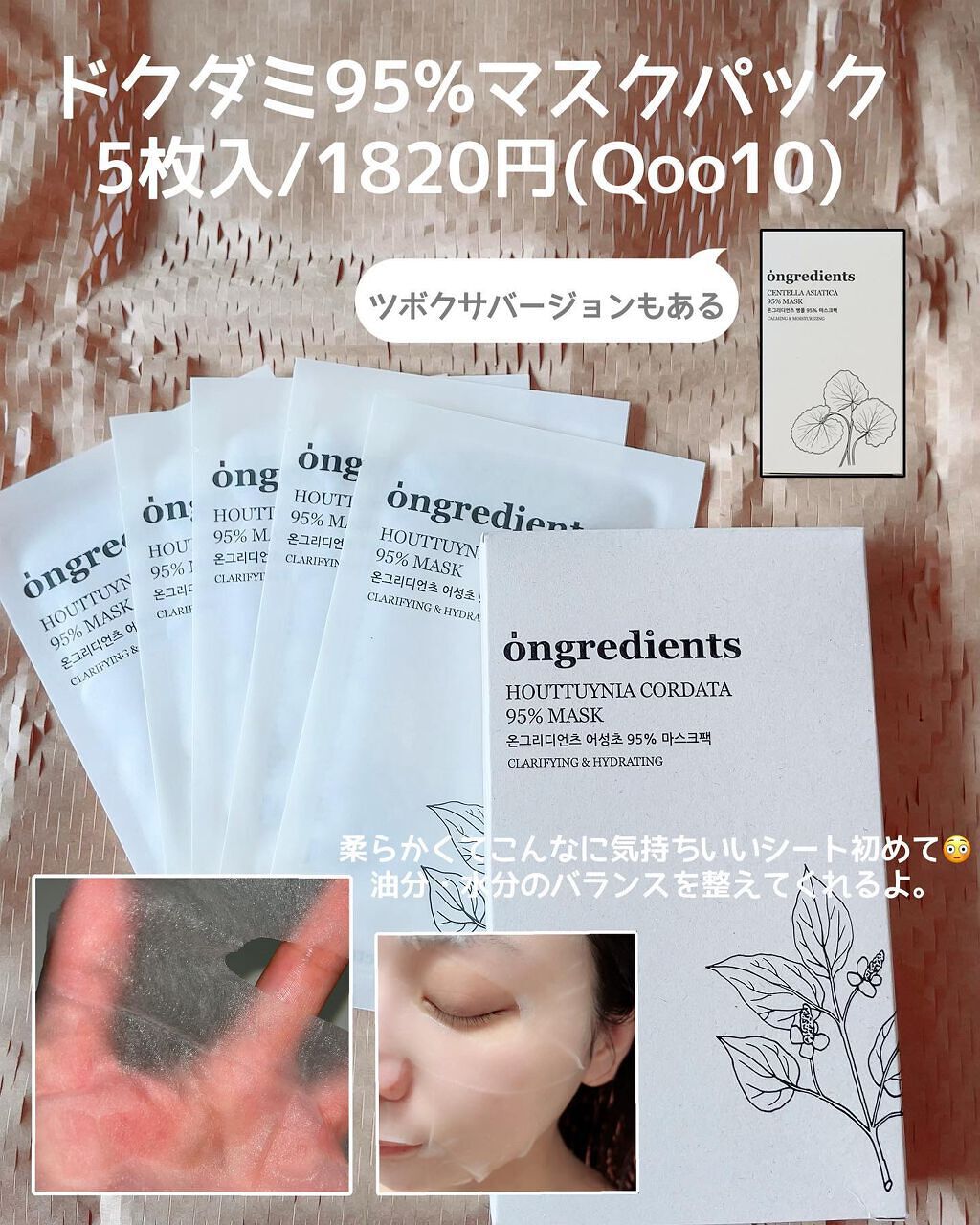 オングリディエンツのベストセラー乳液がたっぷり入ったシートマスク✨ 保湿はもちろん、ツボクサエキスも配合で刺激を受けた肌を素早く落ち着かせてくれるよ! 程よく厚みがあり、肌あたりのよい柔らかなシートマスクで、しっとりツヤっとした使い心地✨