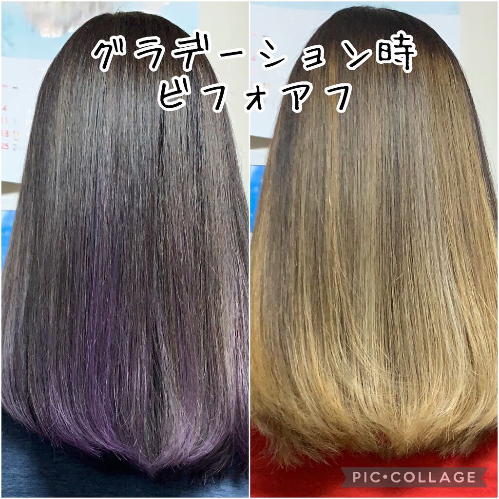 ブリーチ2回後のオレンジ髪を落ち着かせたくて使ってみる。 シルバーとアッシュを1:1の割合で混ぜて、シャンプー後の濡れ髪に塗る。 使った後は若干トーンが下がって好きなカラーに。 オレンジみはかわらない。 インナーカラーのところは青みがすごくでちゃった。 均一感を求めるときにはバターは向かない、かも。