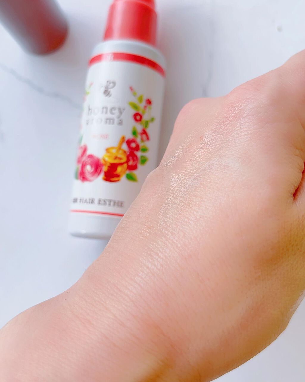 山田養蜂場ハニーアロマ🍯花蜜ヘアエステaローズ洗い流さないヘア美容液です😁ローズの天然精油配合無着色、無鉱物油、パラペン防腐剤は含まれておりません。香りはふんわり香りますが、持続性はありません。質感はトロンとしてるのに、髪に馴染ませるとサラサ...