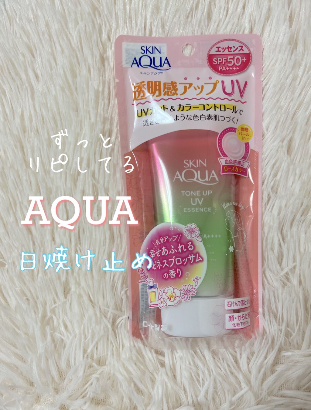 スキンアクアトーンアップUVエッセンスローズローズ初めて使いました!ラベンダーとグリーンは使ったことがあって、日焼け止めや化粧下地はラベンダーを買うことが多いけど、ローズは自然にトーンアップして顔色が良く見えるので良いなと思いました😍白くなり...