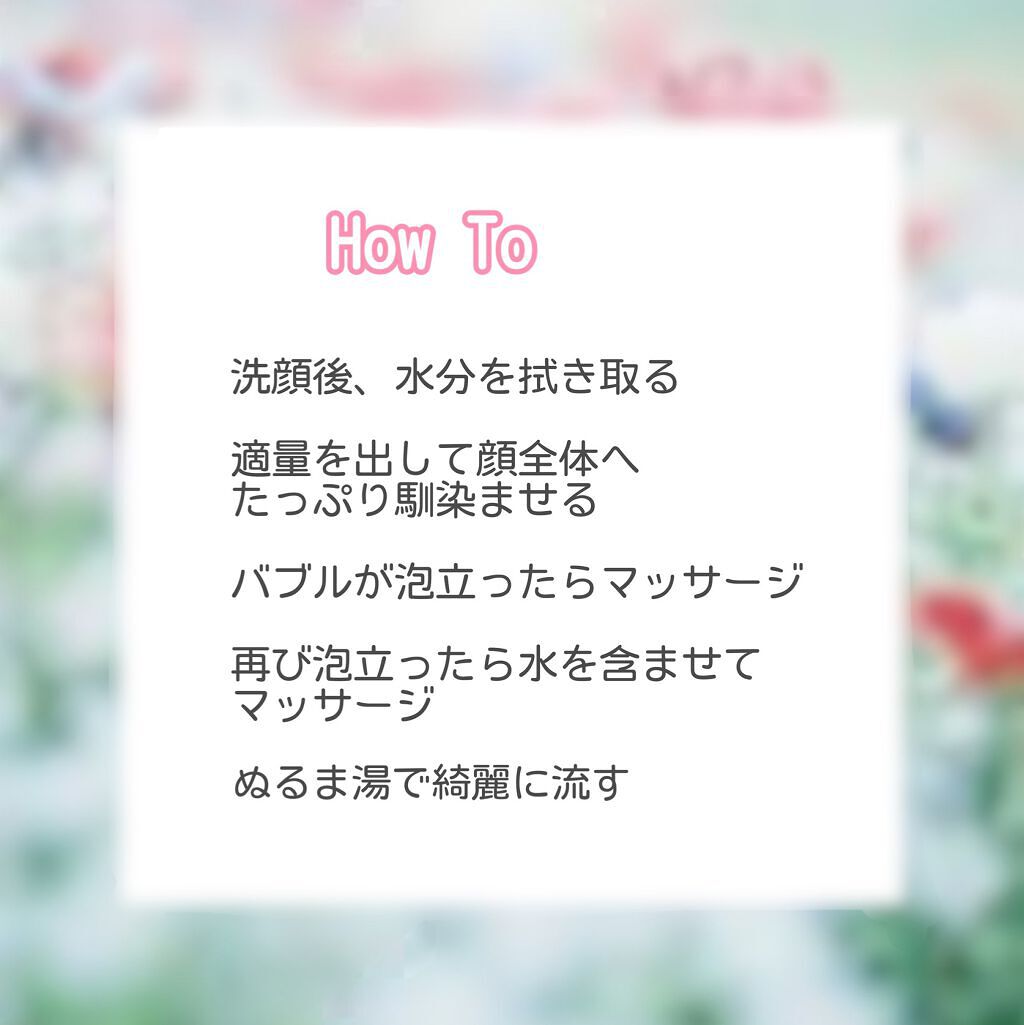 使用前後で肌の明るさの違いがわかる! 肌の汚れ除去 角質除去 肌を整える 肌の引き締め 肌の洗浄 の5つの効果があり、柔らかく明るい肌になります( ˘͈ ᵕ ˘͈ ) 黒いとろっとした液体だけど スルスル〜とのびて、しばらくすると モコモコシュワシュワ泡になるのが楽しい! 洗い流す時も、スッキリ落ちて スベスベ明るくなった肌が…🥺! 本当に1回でもトーンアップを実感できるので 是非試してみてほしいです🫧🫧🫧