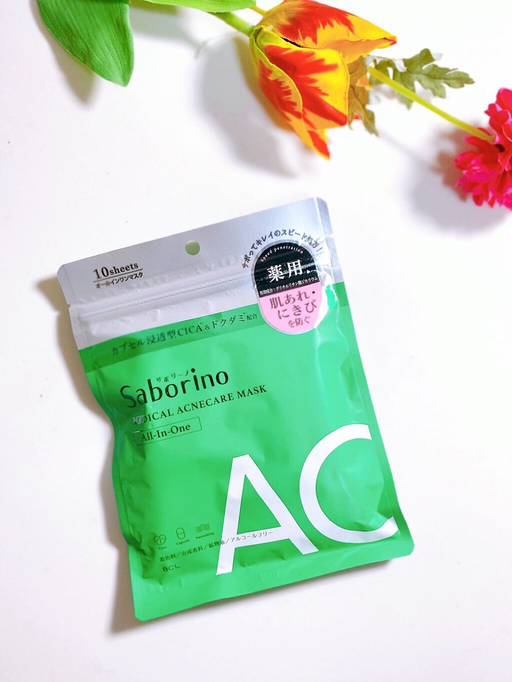 - 【医薬部外品】 スペシャルケア+スキンケアを1枚で完了できる、サボってキレイのスピード処方シートマスク。 ▼薬用美白*1(BR) 有効成分:トラネキサム酸 シミ・そばかす*1・肌あれを防ぎ、ひたっと瞬時にうるおうカプセル処方。 ▼薬用(AC) 有効成分:グリチルリチン酸ジカリウム 肌あれ・にきびを防ぎ、ゆらぎがちな肌を整える瞬間うるおい処方。 *1 メラニンの生成を抑えシミ・そばかすを防ぎます。