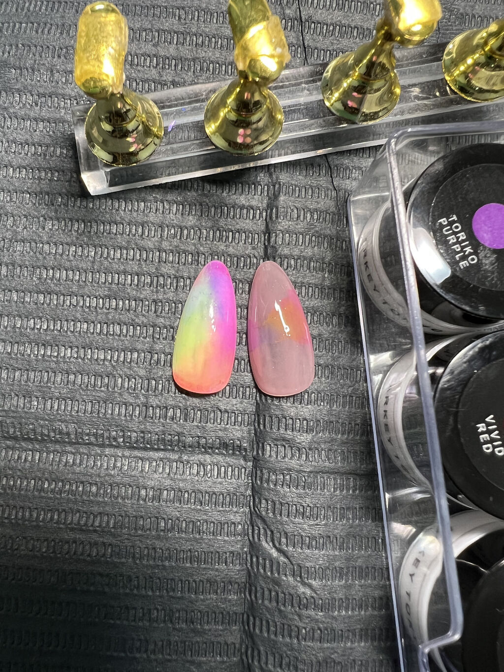 新色は全部で8色です✨ 透け感があって可愛い色♥ すべて2度塗りです。 ミルクホワイト ミルクコーラル シャイニーミルク (ラメ入り) シャイニーコーラル (ラメ入り) ミルクグリーン ミルクブルー アッシュパープル オールドローズ