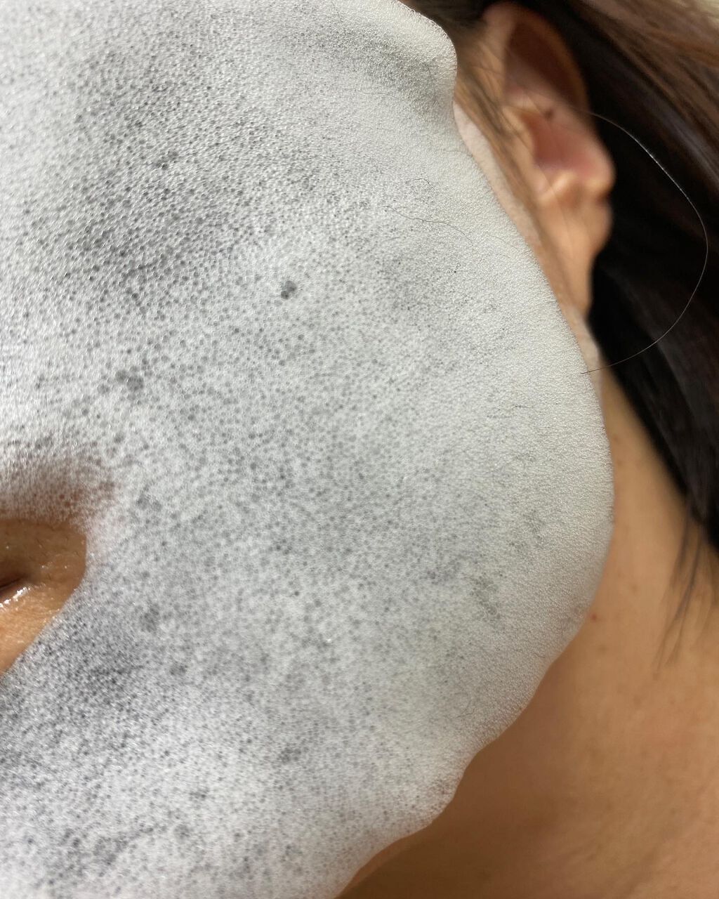 プルプルしたマスクはやわらかくてお肌にフィットするのですが、5分と待たずに重力で下がってきてしまうので何度もつけ替え付け替え使用しました😂 スキンケアをした後の肌に3時間以上使うのが推奨されていますが、なかなか3時間使用できる時間が確保できずに悔やまれます🥺 マスクをはがした後は個人的にモチモチしたお肌の状態に感じました♡