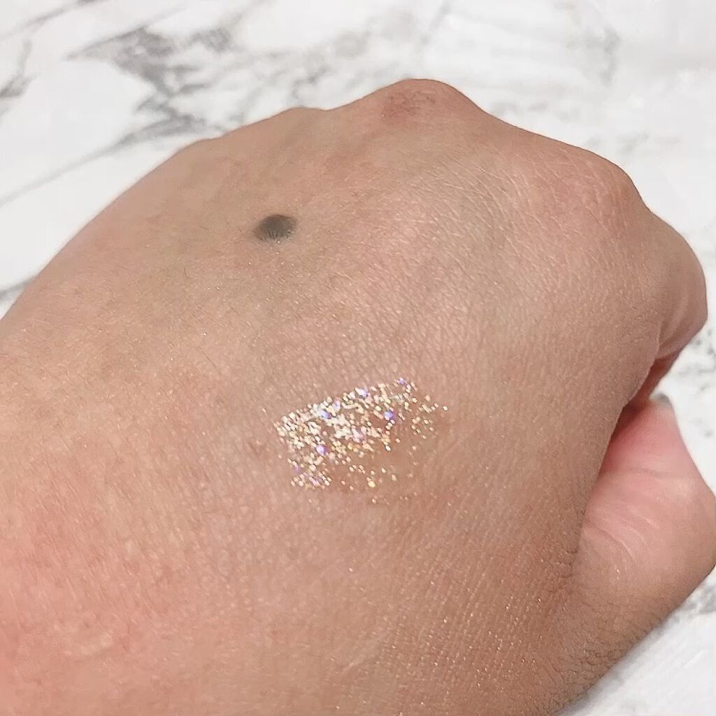 高輝度ラメたっぷりのカラフルグリッター ラメの粒子サイズを大きくしすぎないことで、悪目立ちしない絶妙な輝きに仕上げた 密着力も良いし、ギラギラしすぎない🙆🏻♀️ やわらかく使い勝手の良い極細筆で、狙ったところにラメをオン