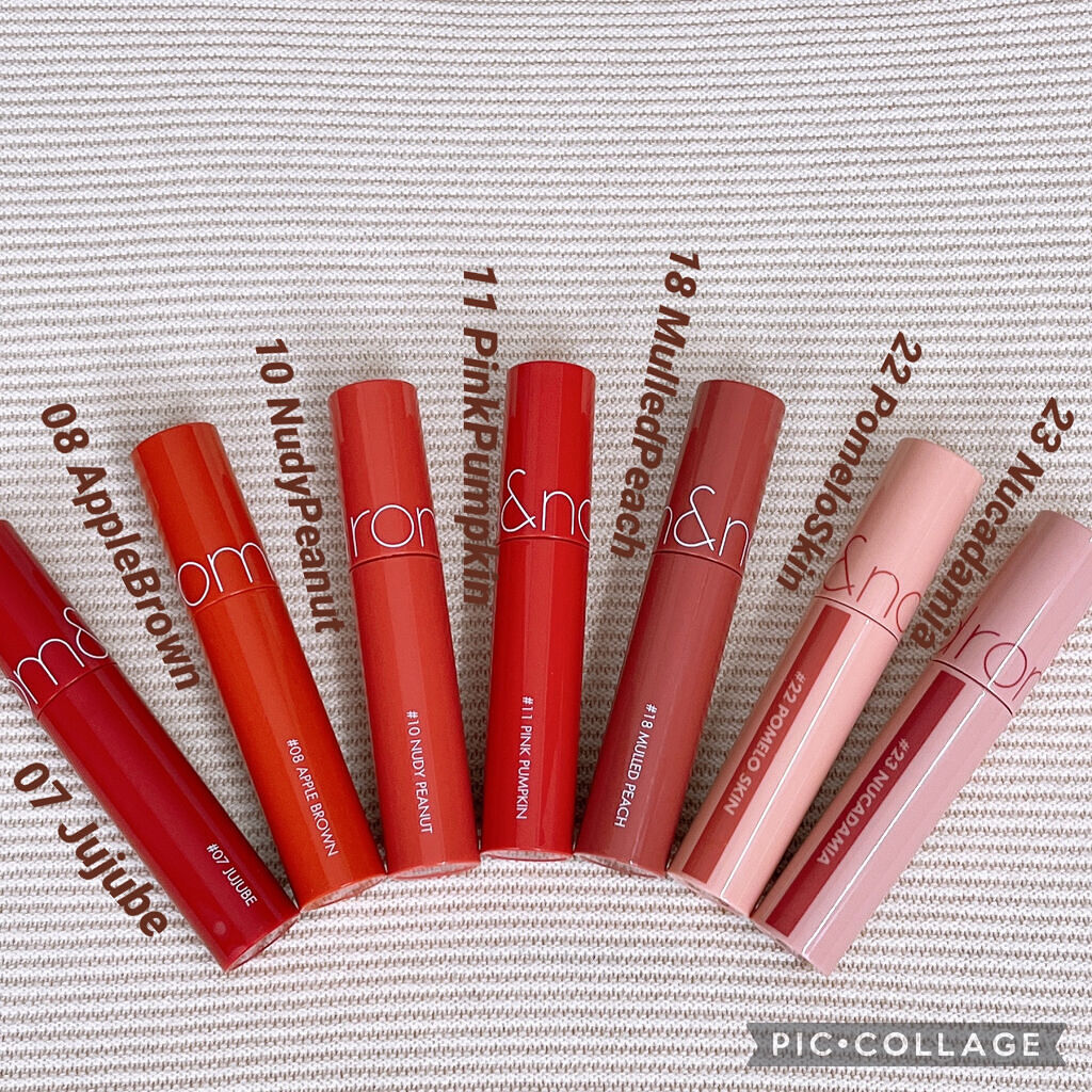 \rom&ndジューシーラスティングティント/#01 ジューシーオーJUCYOH#02 ルビーレッドRUDYRED#03 サマーセントSUMMERSCENT#05 ピーチミーPEACHME#06 フィグフィグFIGFIG#07 ジュジュブJU...