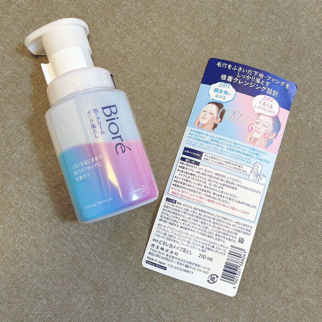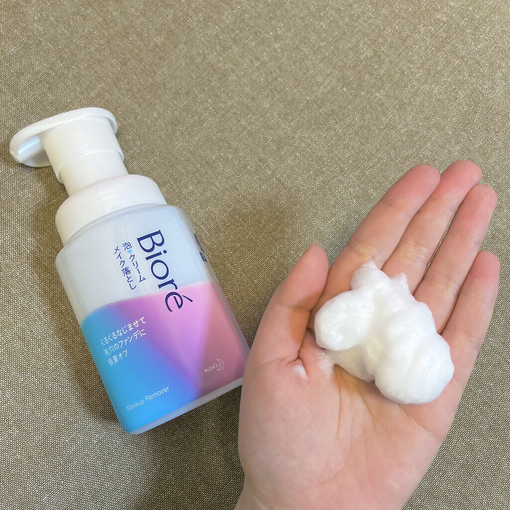 くるくるなじませて落とす。ビオレの泡クリームメイク落とし同じビオレのメイクも落とせる泡洗顔を使っていましたが、こちらに変えて試してみました。プッシュするだけで泡で出てくるから泡立て不要。ヘタレない泡で優しくくるくるすると、しっかりファンデ...
