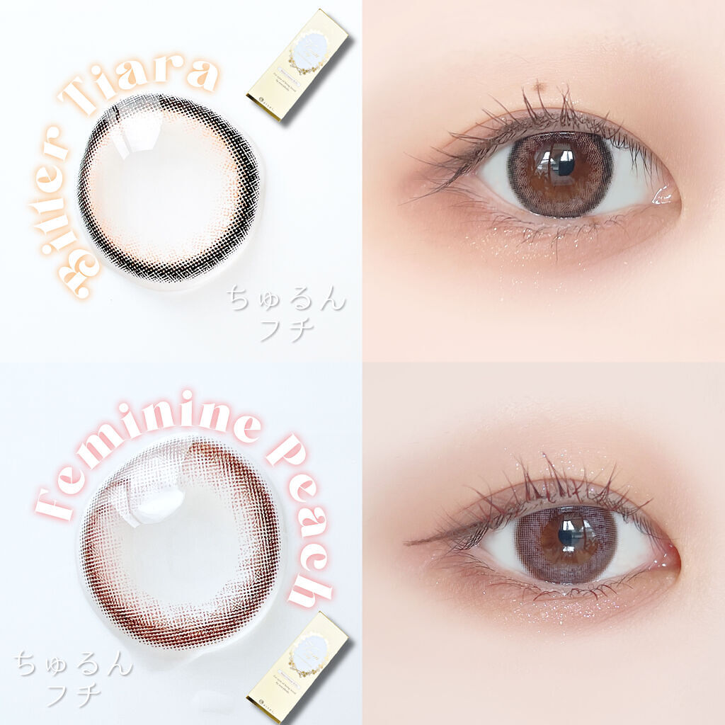 - ※2025年7月〜商品パッケージを順次リニューアル。尚これに係る商品の返品・交換等は承っておりません。 ちゅるんとかわいいふんわりレンズ ふんわりと瞳になじみながら、「ちゅるん」とツヤっぽく存在感あるフチ感を実現 <カラー説明> ■天使のなみだ ≪儚げでうるんだ瞳≫ ブラウン×甘いピンクラベンダーで、透明感のあるうるっとした仕上がりに。 ■淡雪うさぎ ≪やさしげでキュンとする瞳≫ 淡いミルクベージュがふわっと溶けこむように馴染み、瞳をやさしい印象に。 ■星屑キャンディー ≪儚さあふれる うるしゅわ瞳≫ 透明感のある絶妙ニュアンスグレー。 儚さあふれる、うるしゅわ瞳に♡ ■満月パンケーキ ≪儚げちゅるん ぷにぷる瞳≫ 極細フチ×淡いベージュで 儚げちゅるん。 ぷにっと可愛くまあるい瞳を演出♡ ■夢見(ゆめみ)パール 映えちゅるん♥ツヤっぽ瞳 イエベでもブルべでも 使いやすい、柔らかなグレージュカラー。 ほんのり色っぽい、ツヤ感たっぷりの瞳に。 ■海月(くらげ)リング 光がゆらめく♥うるちゅる瞳 透明感たっぷり儚げ白っぽグレー。 自然に光が入ったような 、うるうるちゅるんな瞳に。 DIA:14.2mm BC:8.7mm 中心厚:0.08mm( -3.00D ) 含水率:42.5% 使用上の留意事項 ●眼科医院等を受診してからお求めください ●眼に異常を感じたら直ちにレンズ使用を中止し、お近くの眼科等で診察を受けてください ●医師の指示にしたがってご使用ください ●コンタクトレンズを装用する場合、自覚症状がなくても、眼科医院等での定期検査を受けてください ●レンズに不具合がある場合は使用しないでください