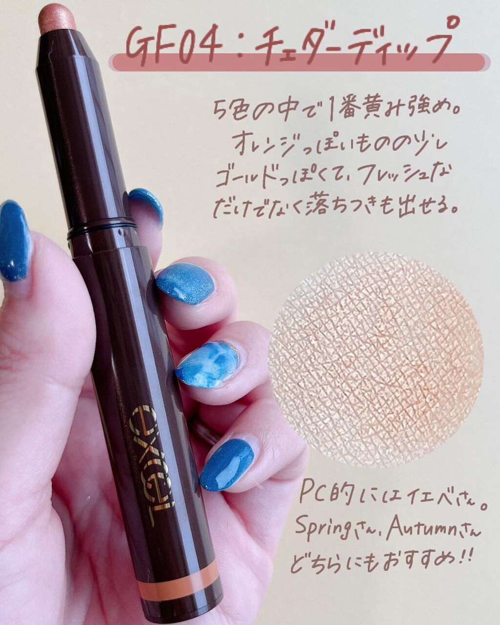 7年前に愛用していたアイシャドウが帰ってきた🩷 エクセル スキニーリッチシャドウ ♡ SR07 マグノリアブラウン そのタイミングでSR07復刻は嬉しすぎた!しかも私は知らなかったけど投票で決まったそうじゃない!! 左上の偏光みは本当に本当にわずか指に取ったらわかりやすいけどブラシで瞼に塗る分には別にペカーンとなるわけでもなし。