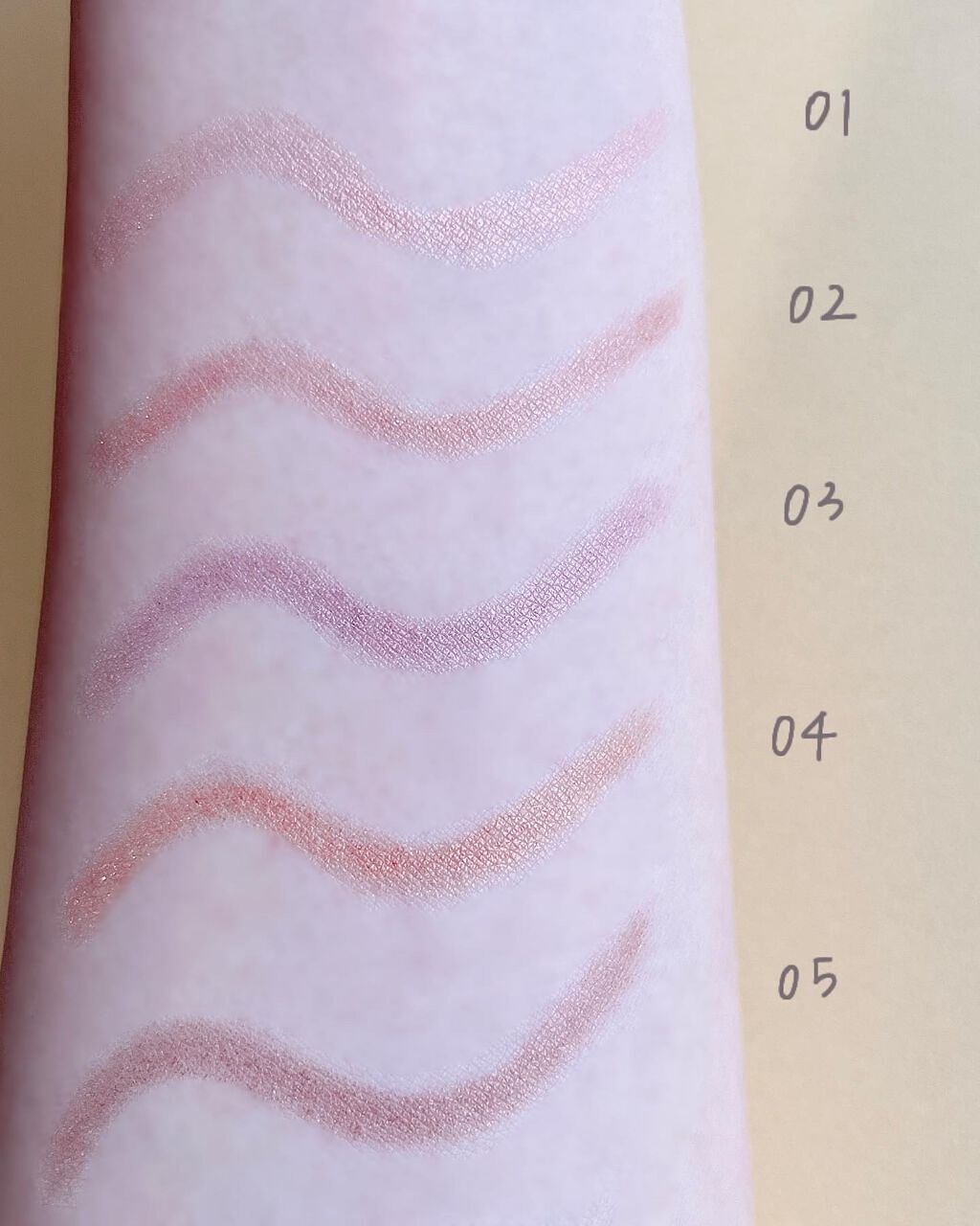 なめらかで本当に塗りやすく 1回塗りだとベースっぽくシアーに 2回以上重ね塗りするとしっかりに。 そして、よれない!! こすっても落ちにくく しっかり密着〜!!!って感じなので これからの暑い時期にも心強いです💪 どの色みも肌馴染みが良く ぎらつかないけれど艶っぽいカラー。なめらかな描き心地も本当に良いので ぜひ試してみてね🥰