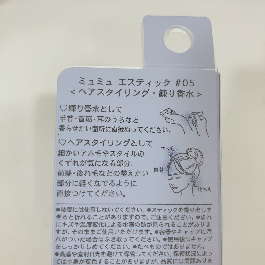 - 練り香水×まとめ髪・アホ毛スティック として使える リップ型マルチスティック POINT①まとめ髪スティックとして使える。 アホ毛、前髪、おくれ毛をしっかりまとめて弱点知らずのヘアスタイルをいつでもキープ。 しっかり直せるのにベタベタしない。 POINT②練り香水としてふんわり香る。 好きな香りをいつでもどこでも付け直せる。うるおい成分たっぷり。肌にも優しい。 香りはインフルエンサー100人が厳選した4種の香り。 POINT③コスメ感覚で持ち運べる。 リップ型だからポーチに入れても邪魔しない。ポーチの新たなレギュラーアイテムに。