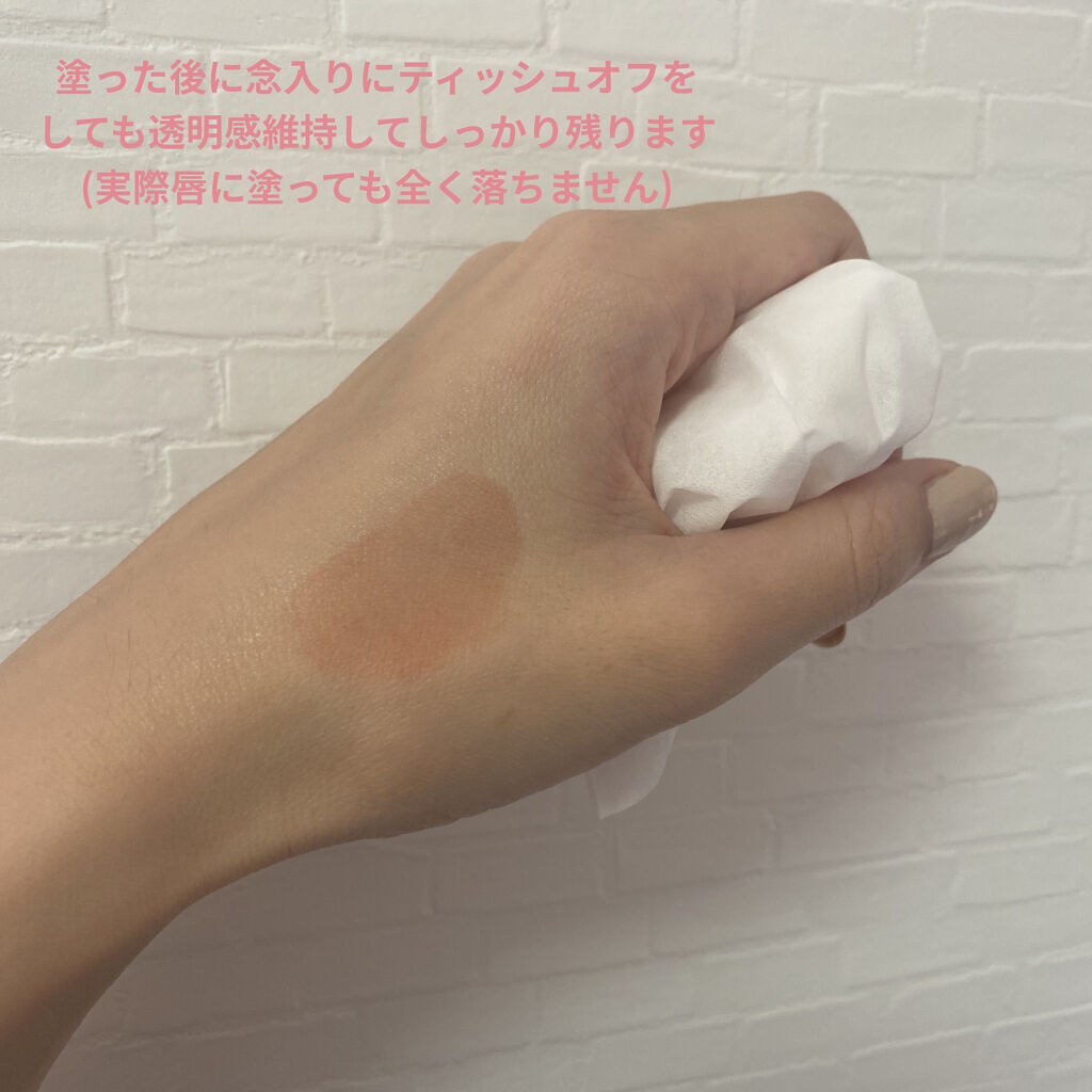 モモ果汁を含んだような、みずみずしい水感モモカラー🍑✨️ 透明感のあるつやが綺麗!! 軽いつけ心地でベタつきのない高水分ウォーターティント! 何よりつやつやになるのがお気に入りです💖