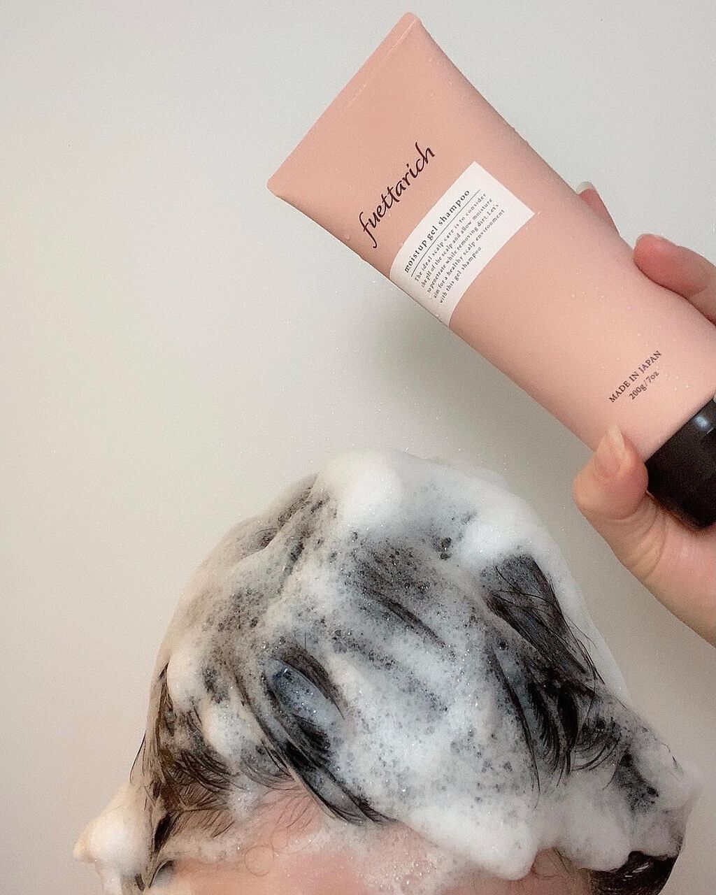 ヘアサロン監修のfuettarich(フエッタリッチ) ✳︎ ジェルタイプのシャンプーははじめて! この濃密ジェルは泡立ちがよくて、頭皮の毛穴にも入り込める微細な泡に変わるから、毛穴の奥からすっきり! 静電気やドライヤーの熱をうるおいに変えてくれるヒートモイスト処方なので、冬でも安心してドライヤーやアイロンが使えます✳︎