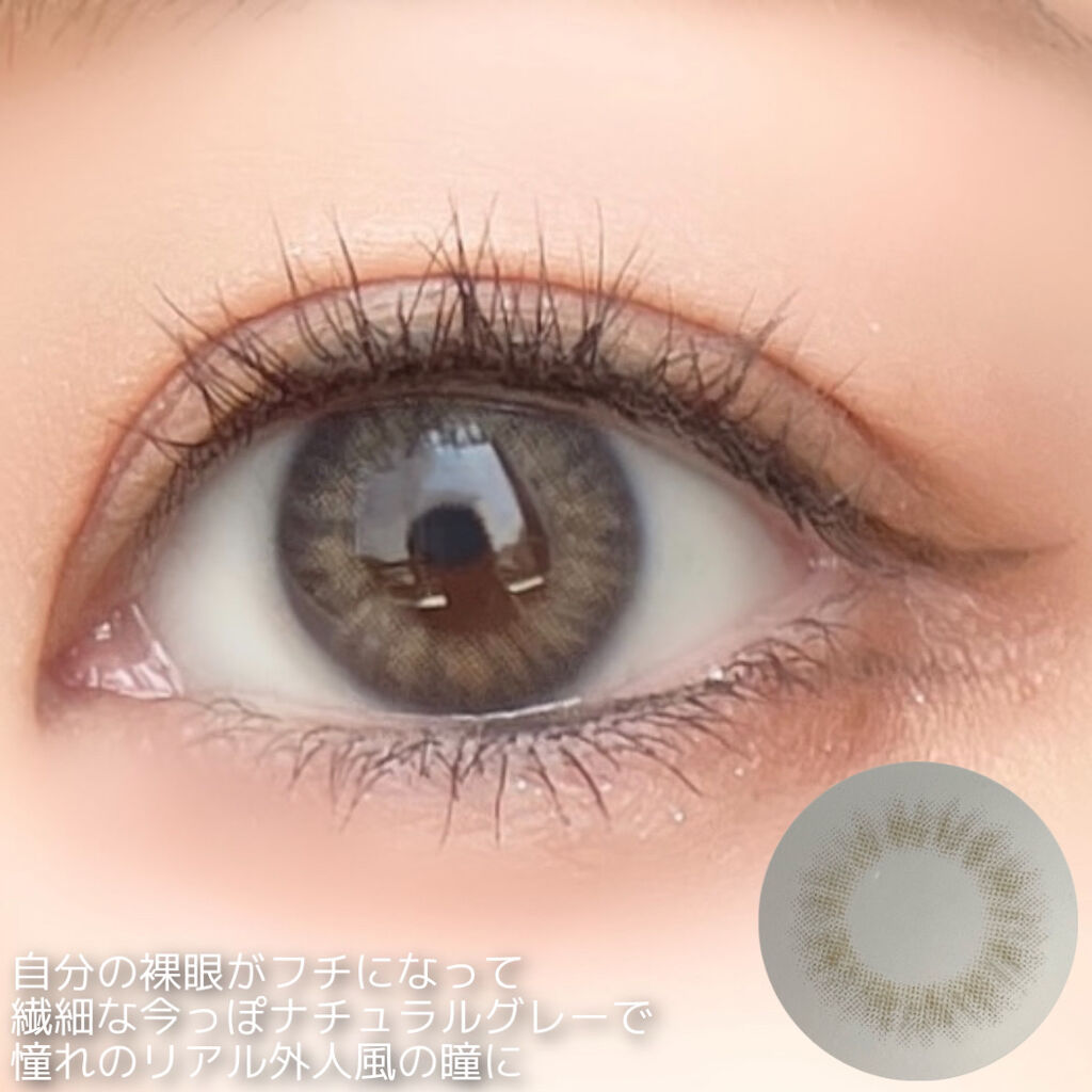 個性的なカラーからナチュラルなものまで幅広いラインナップで見てて楽しかったです! 透明感のあるブルーグレーが瞳に溶け込み、リアルなグレーアイに見せるレンズ。 透け感のある色味だけどしっかり発色するナチュラルハーフ系カラコン。着色直径も小さめなので着せ替え感があってかわいい。 N's COLLECTIONはレンズのつけ心地もすごく良くて他のカラーもとっても可愛いです!