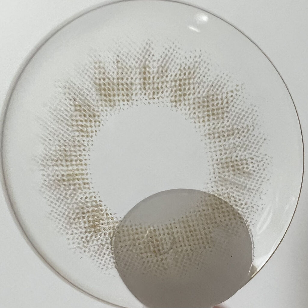 絶妙なブルーグレーの色味のある透け感カラコン! ぼやけるようなプリントだから、パキッとならず自然になじむ! 付け心地もゴロゴロしないし快適🫧 ブルー系カラコン好きだから正直めっちゃ気に入った🎀
