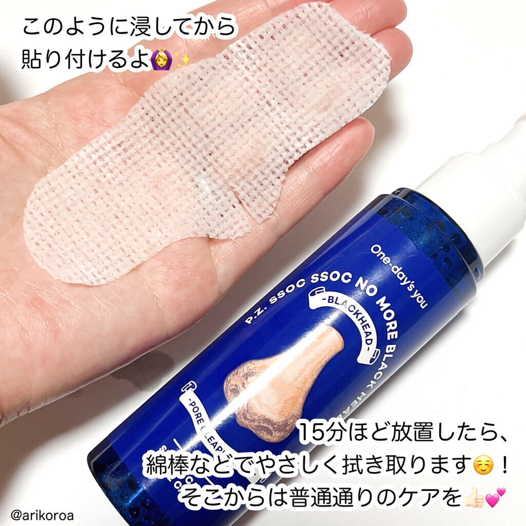 One-day'syouノーモアブラックヘッドQoo10ビューティーランキングでも1位を獲得した鼻パック🩵肌に刺激を与えずに優しく溶かしてくれる毛穴ケアパック🌿サラサラとしたテクスチャーのエッセンスをコットンに染み込ませて、15〜20分ほど置...