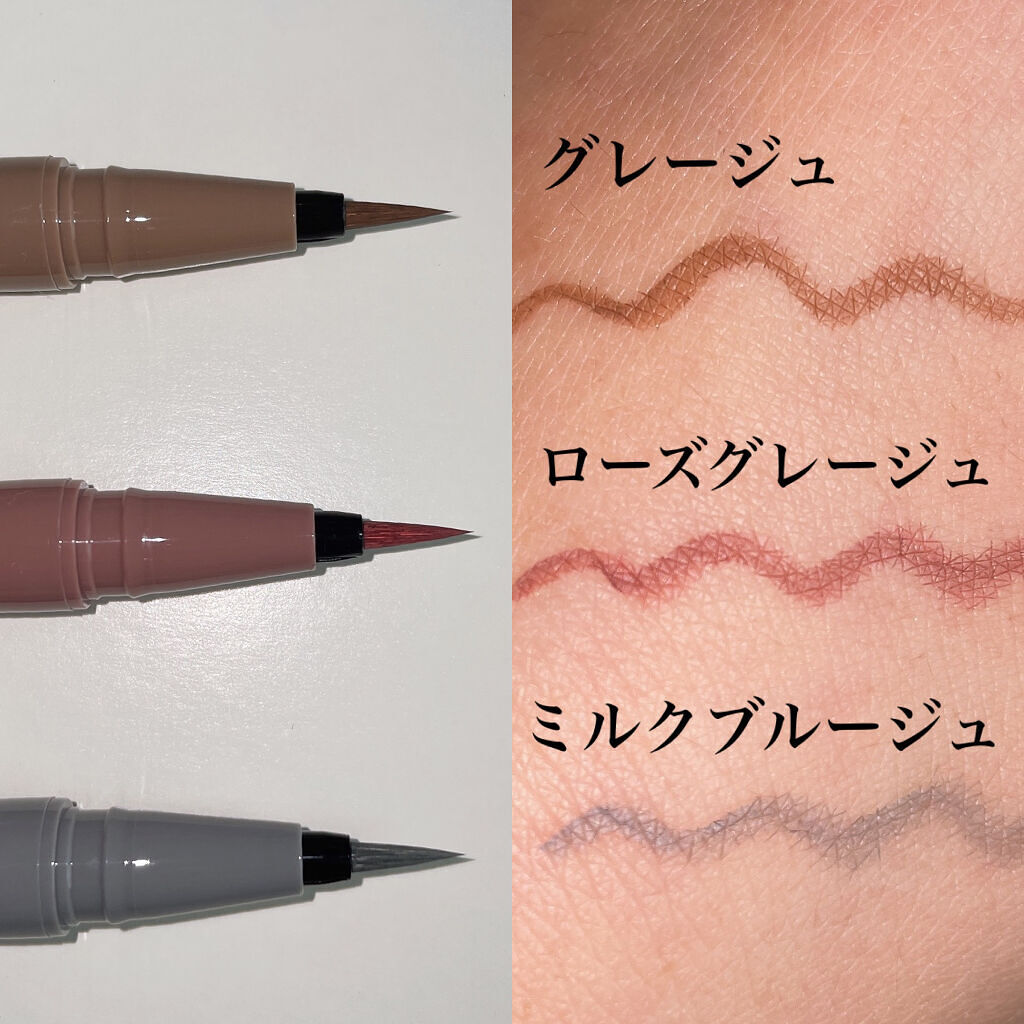 - ※2023年8月頃〜 01・02の容器デザイン印刷色が順次リニューアル。尚、これにかかる商品の返品・交換は承っておりません。 にじみ・くずれに強い速乾タイプの極細リキッドアイライナー 0.1mmのコシのある超極細筆を採用。 細いラインもブレずにきれいに描ける。 水・汗・涙・こすれに強いのに、お湯で簡単オフ! まつげのすき間埋めや目尻のハネ上げラインもお任せ
