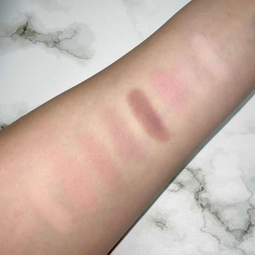 TOMFORDのアイカラークォード、手持ちの2色は定番の人気カラーだと思うので、比較してみました🙆🏻♀️まずハネムーン!パレットで見ると下2色が赤紫のように見えますが、肌の上だと少し赤みのあるブラウンのような感じです。左下はベースを明るめに...