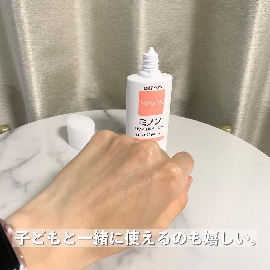 肌のバリア機能を守りながら紫外線を防ぐ ミノンの日焼け止めからとろりなめらかなジェルタイプの「ミノンUVマイルドジェル」が新登場しました! 紫外線吸収剤フリー・パラベンフリー 肌へのやさしさを考えたこだわり処方です 赤ちゃんから高齢の方まで家族みんなで使えるところが気に入っています