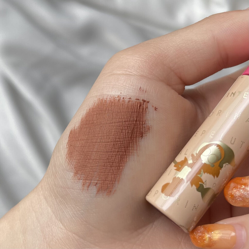 INTO Uのスーパーマットリップ&チークマッド ふわっとしたテクスチャで 自由自在にぼかせるのが◎ 美人シナモンは 公式の画像よりもオレンジっぽくて イエベさんは使いやすいカラー。 チークとリップの色を統一すると とっても可愛くなるので 持っていて損はないアイテムです!
