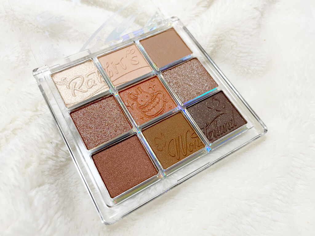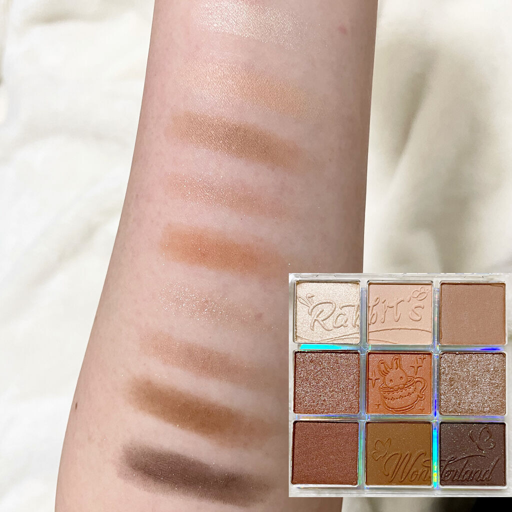- 雲のような柔らかい質感で密着力が抜群です。 もちふわなテクスチャーで高発色なアイシャドウ。 捨て色なしの9色パレットです。 順番に重ねるだけで 輝きの微細パールで、ギラつかない、大人のツヤ感になります。 しっとりとしたパウダーがしっかりと色づいて粉飛びしにくくピタッと密着します。 *商品サイズ (幅×奥行×高さ) :8.5*8.5*1.5cm