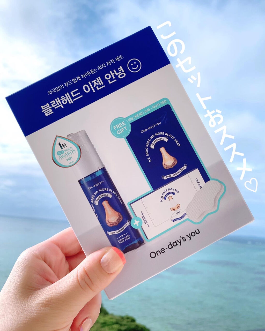One-day'syouノーモアブラックヘッドQoo10ビューティーランキングでも1位を獲得した鼻パック🩵肌に刺激を与えずに優しく溶かしてくれる毛穴ケアパック🌿サラサラとしたテクスチャーのエッセンスをコットンに染み込ませて、15〜20分ほど置...