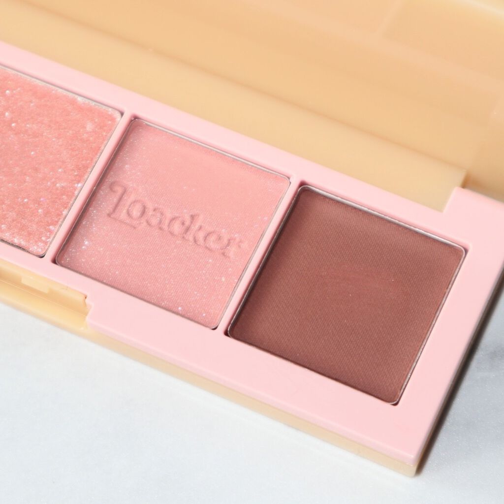 しっとりしているので粉飛びを気にせずメイクできます! 右下のピンクを使いたい気分だったので 上まぶたの目じりにポイントで使いました💓 パッと見は使いにくそうな色ですが ブラシに少しずつ取っていけば自然な仕上がりになります✨