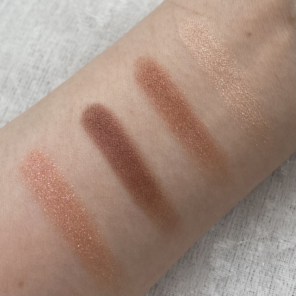 - 透け感発色と輝きを兼ね備えた4色のアイカラーパレット。重ねるごとに輝きを増し、透明感のある立体的なグラデーションアイメイクが完成。アイメイクのバリエーションを広げる高輝度ラメをon。3種の美容エモリエントオイル*配合。目元の乾燥を防ぎ、うるおいを保ちます。 *ホホバ種子油、アボカド油、メドウフォーム油