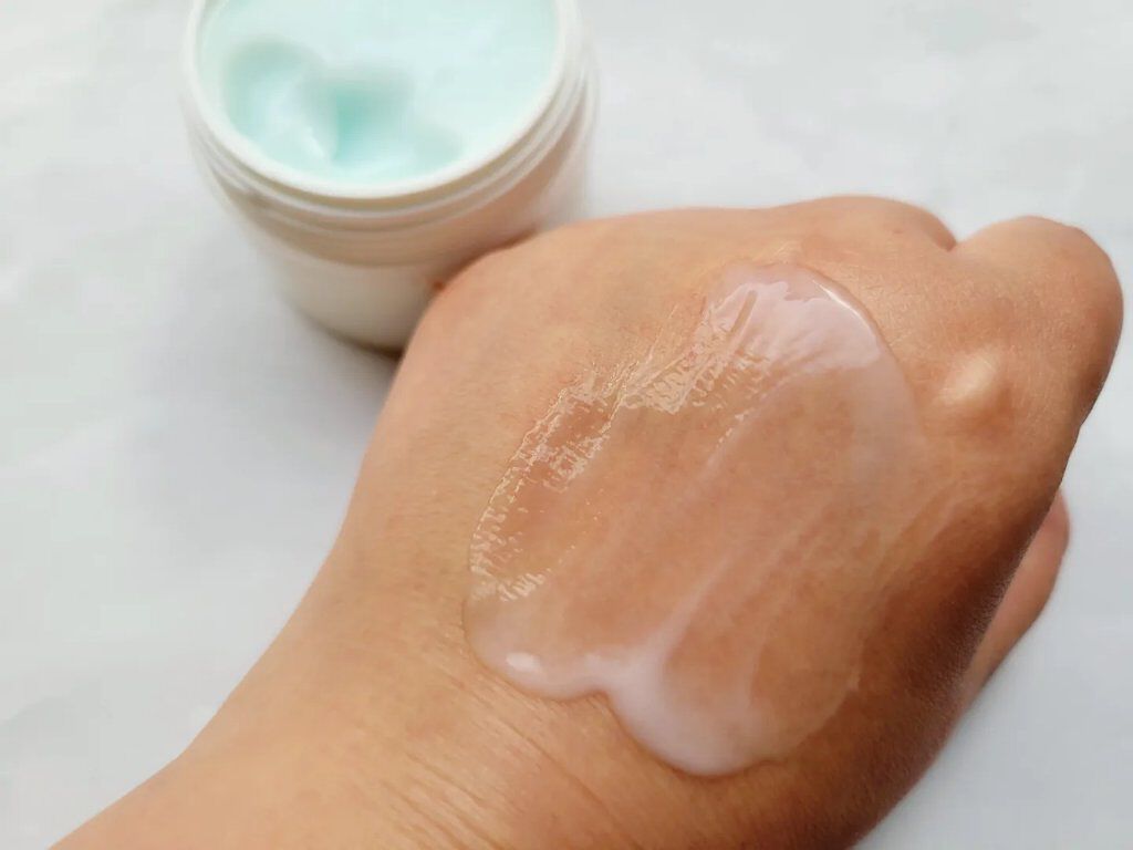 乳液やクリームを塗るとすぐにニキビができてしまう混合肌。 スパチュラ付きで衛生的。 中は水色で、ほんのりいい香りが🌸 顔に塗ると、うるおいの膜が肌を守ってる感じに。 マットタイプとのことですが、サラサラになるわけではなく、ほんのりツヤも出てくれます。
