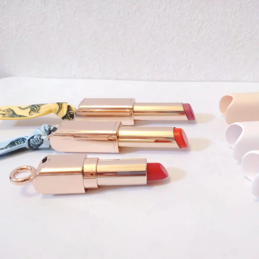 ★07sunny warmthゴールド・レッドパールが煌めくサニーオレンジShine Type ★21little vacationやわらかな赤味がかったタンジェリンオレンジGlow Type ★07 は細かいパールがキラキラかわいい♡ツヤツヤ輝いています♪ ★21 は7よりピンクっぽい肌なじみカラー♡オフィスメイクにオススメ♪ どちらも、するする~っと、なめらかに塗れて、ツヤリップに♡ 大好きな塗り心地&ツヤ感!