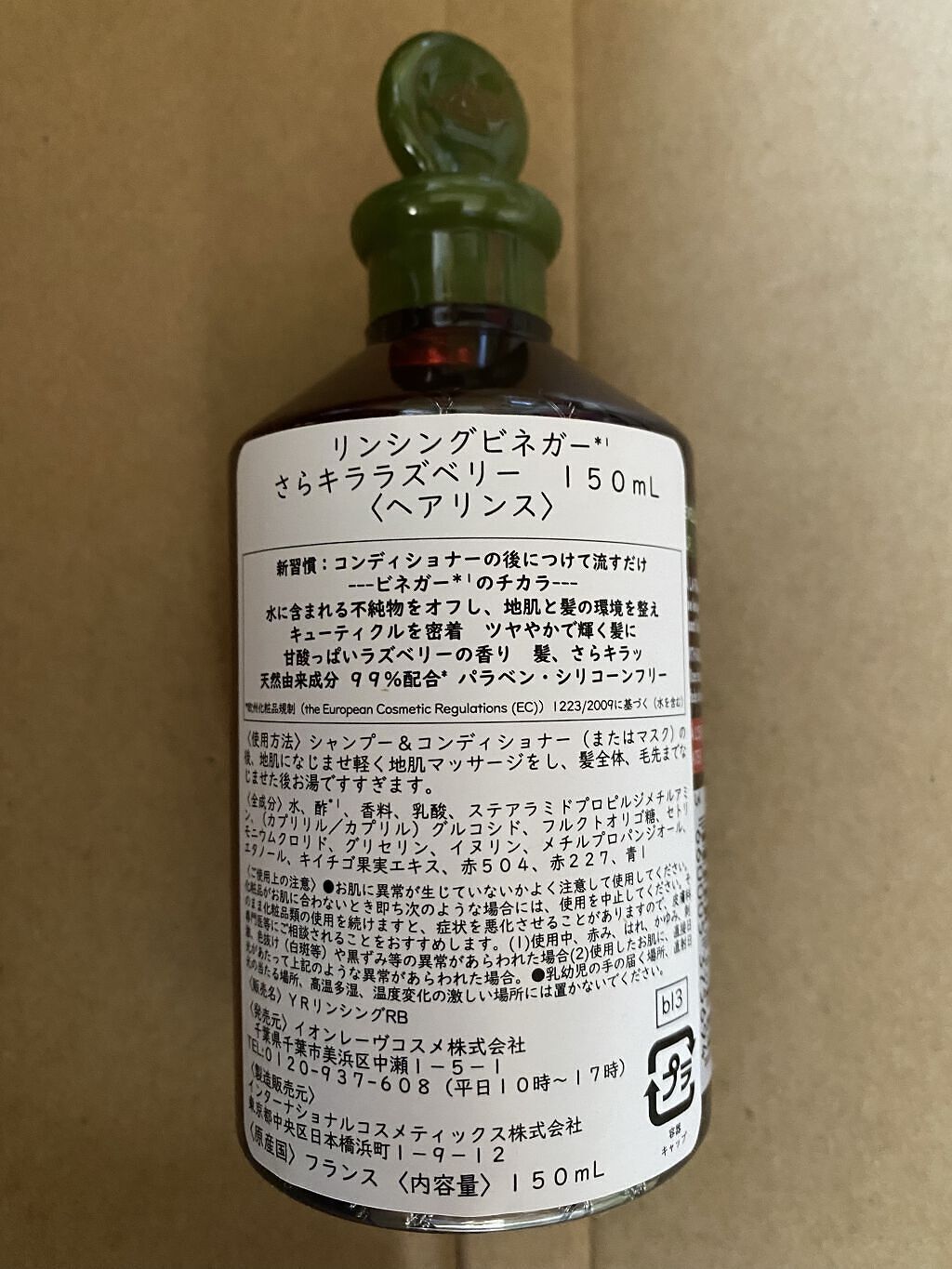 イヴ・ロシェリンシングビネガー・ピュアリフレッシュ うるつやモリンガ・シルキーシャイン さらキララズベリーこちらウエルシアでたまたま見つけて購入しました。コンディショナーやヘアマスクなどの後に頭皮や毛先に馴染ませて流すだけ!ビネガーのヘアトリ...
